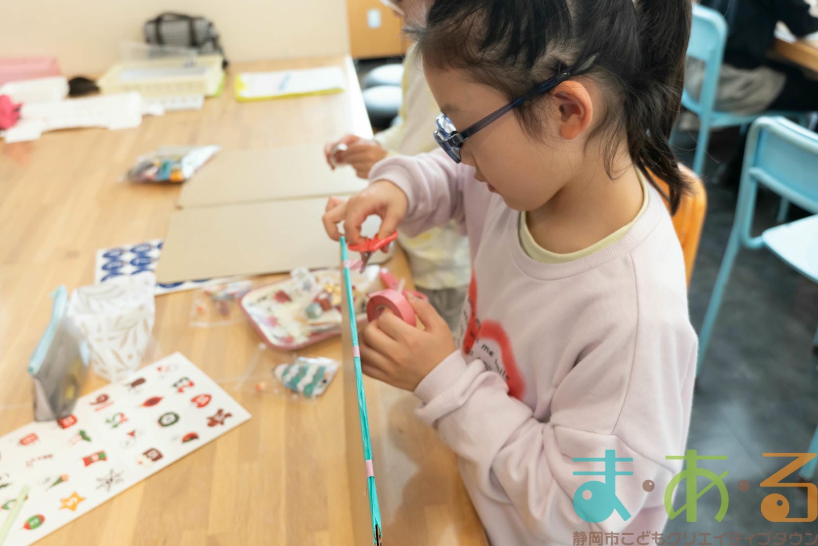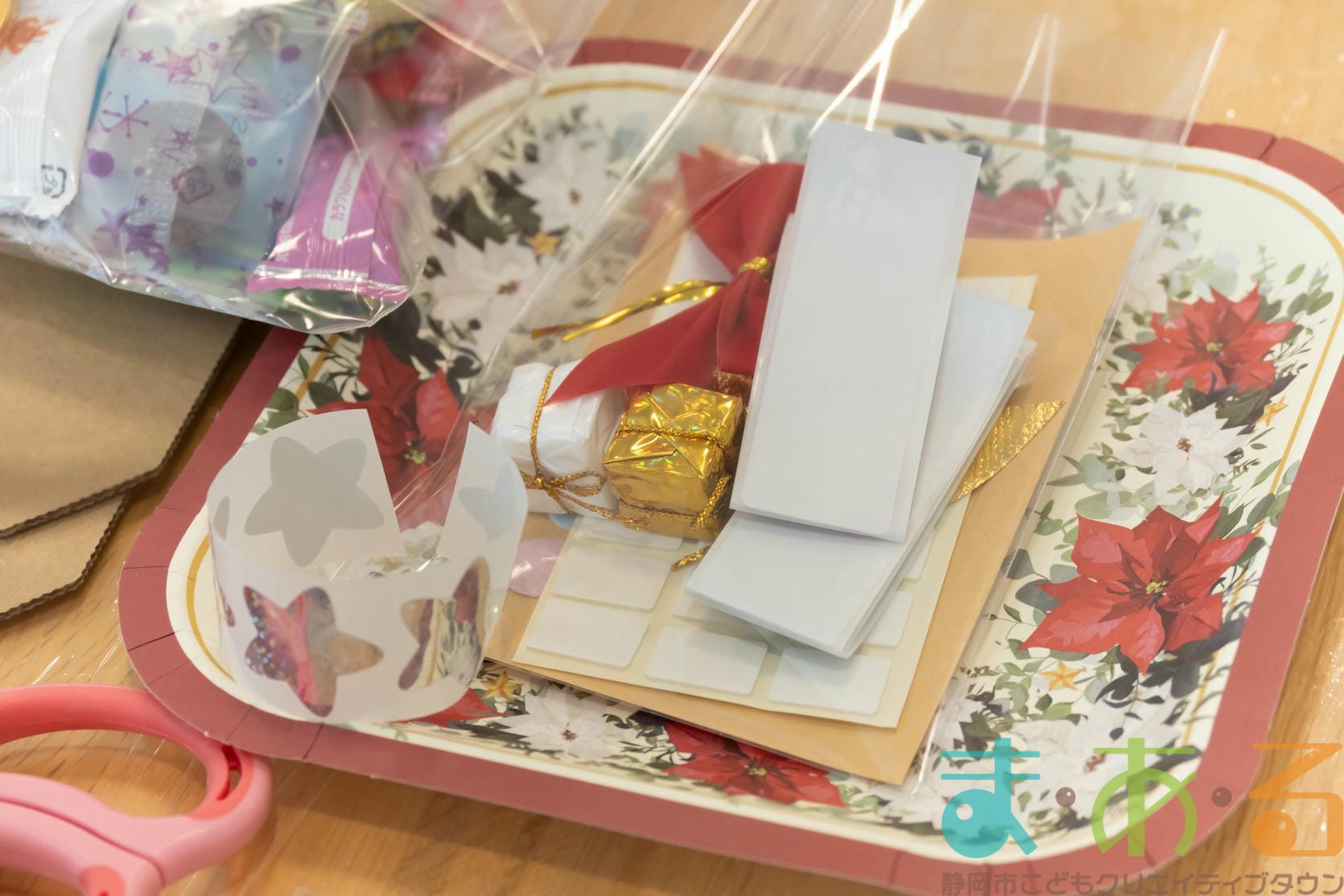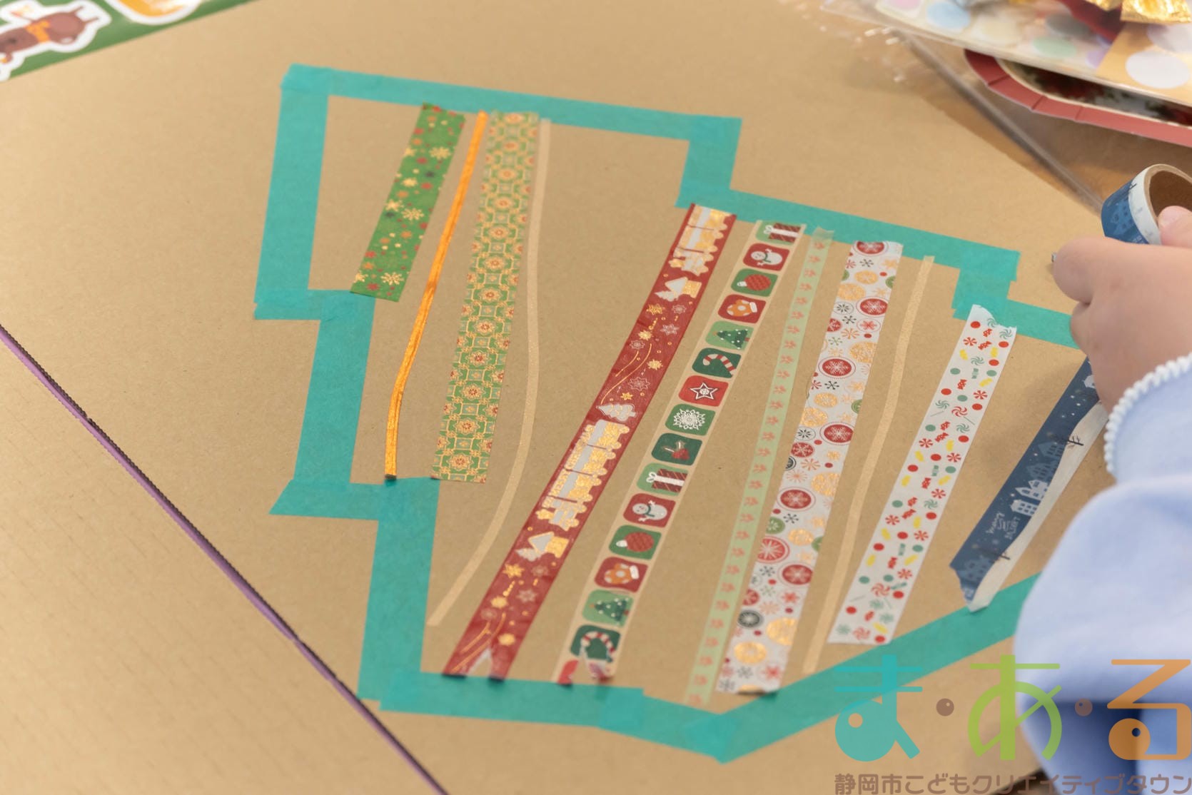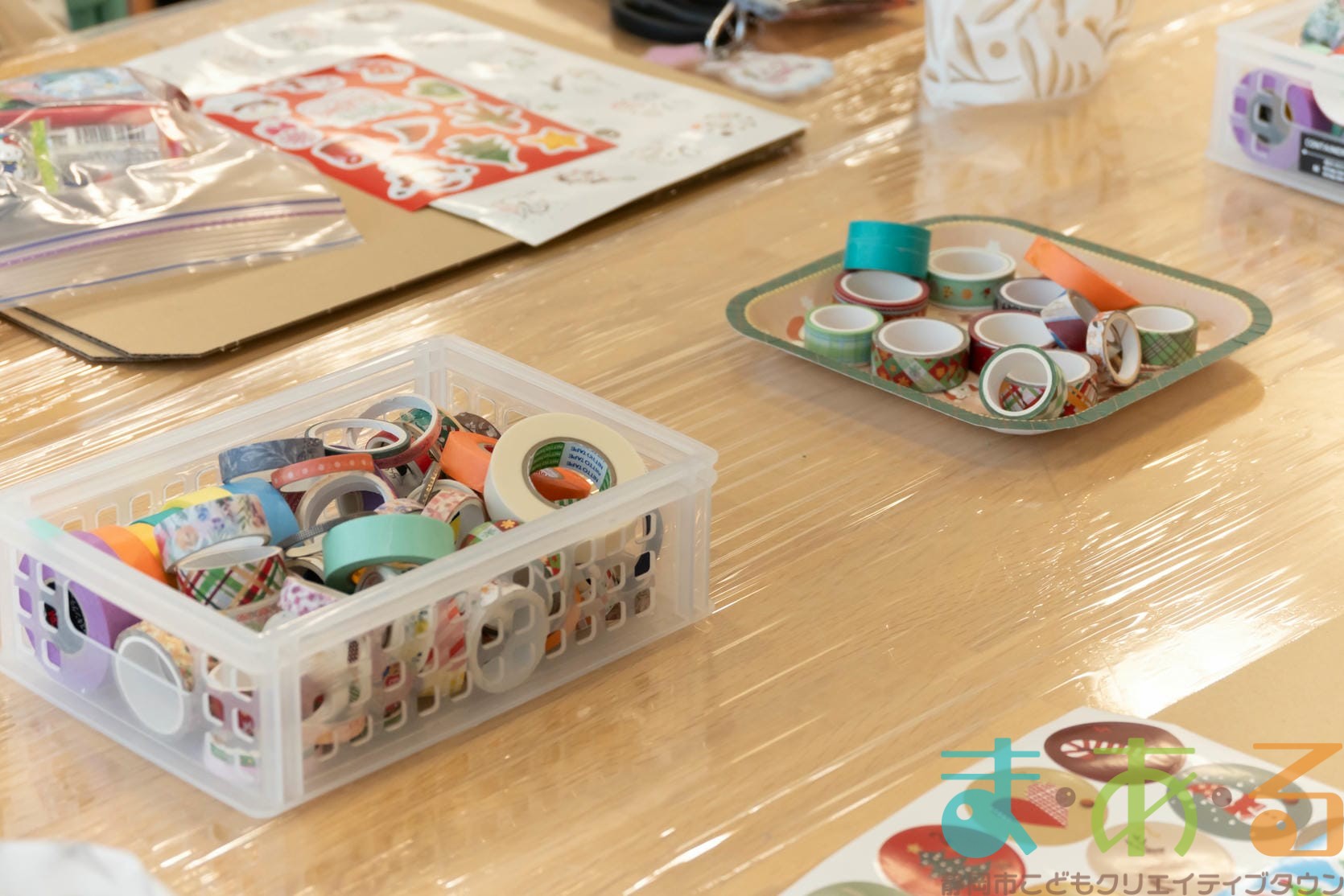 沢山のマスキングテープ、シール、クリスマスの飾りなど、材料を用意していただきました。