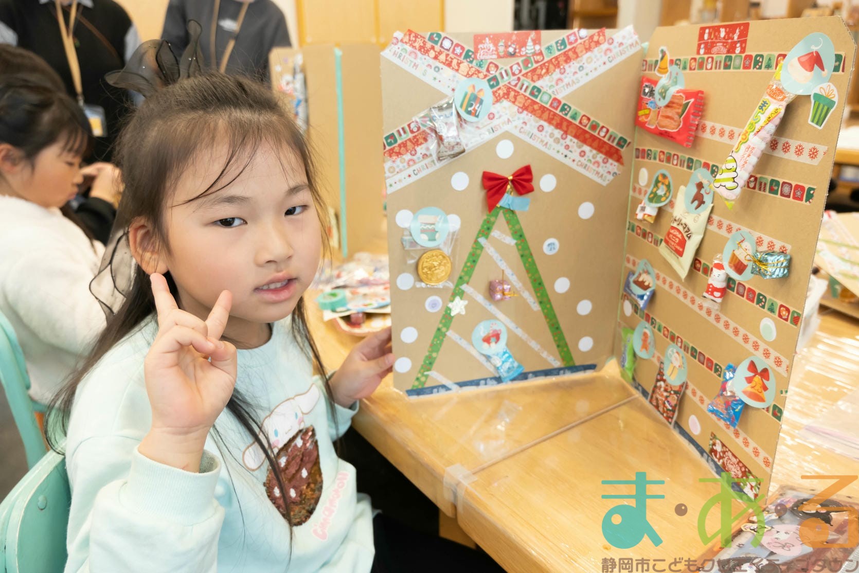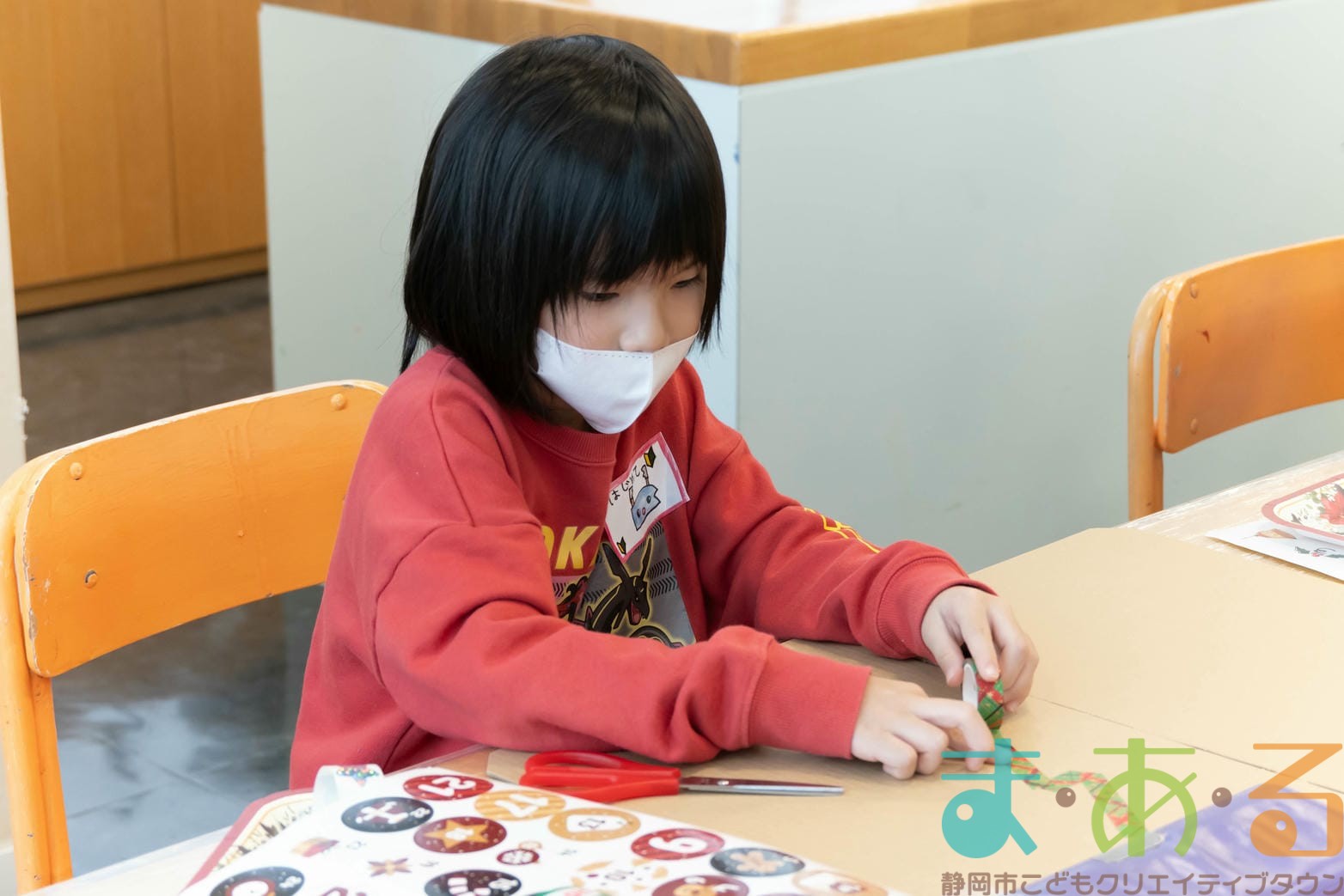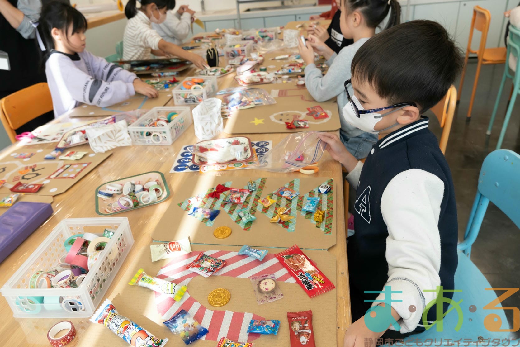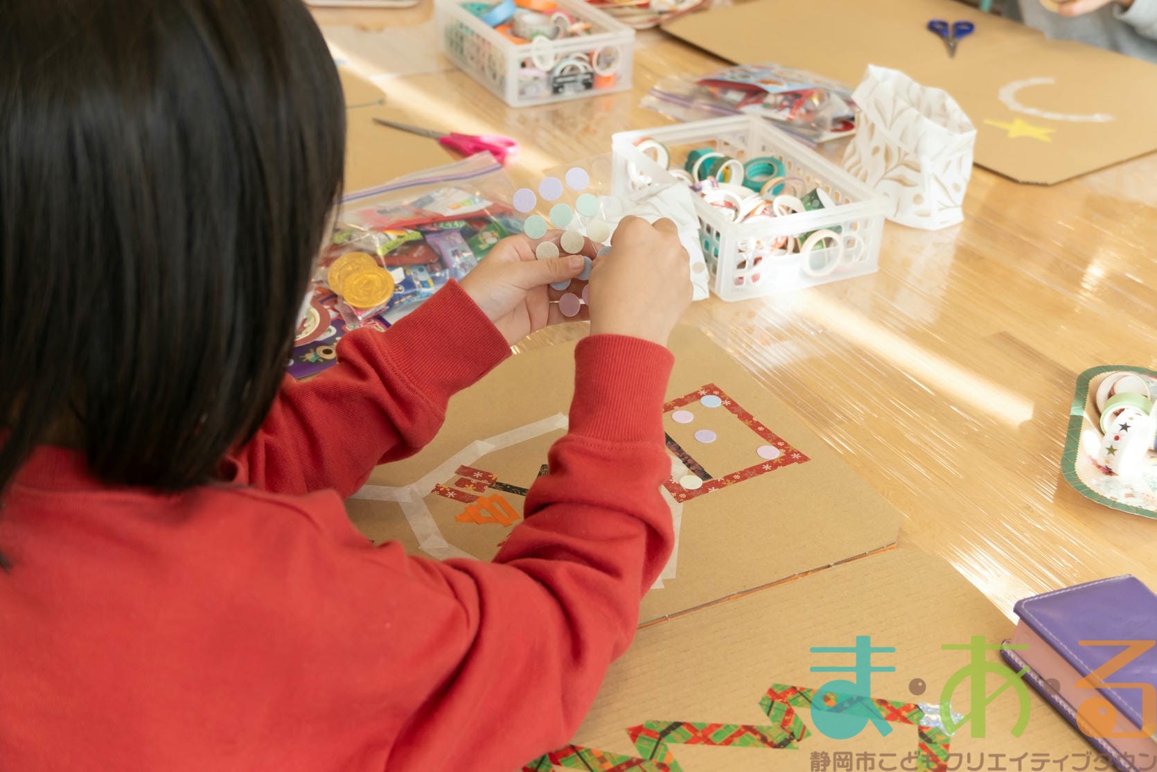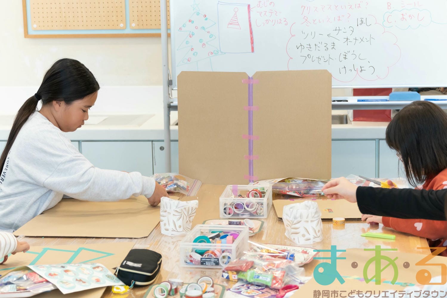 沢山のマスキングテープ、シール、クリスマスの飾りなど、材料を用意していただきました。