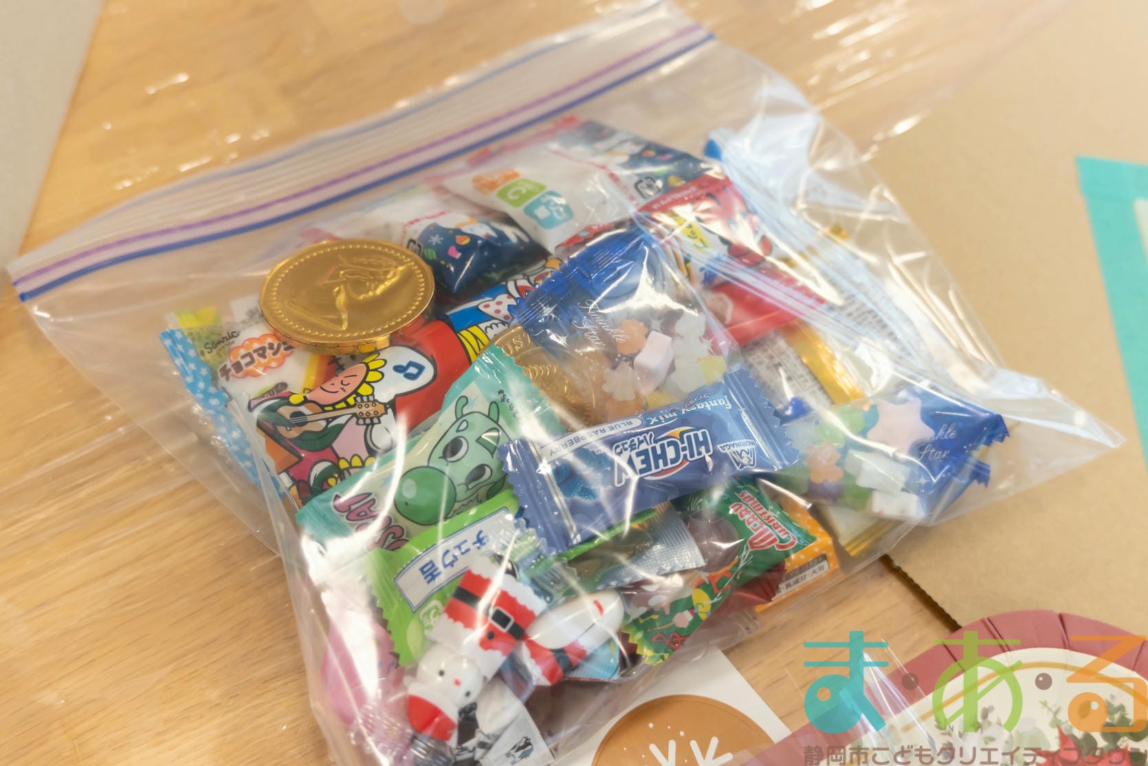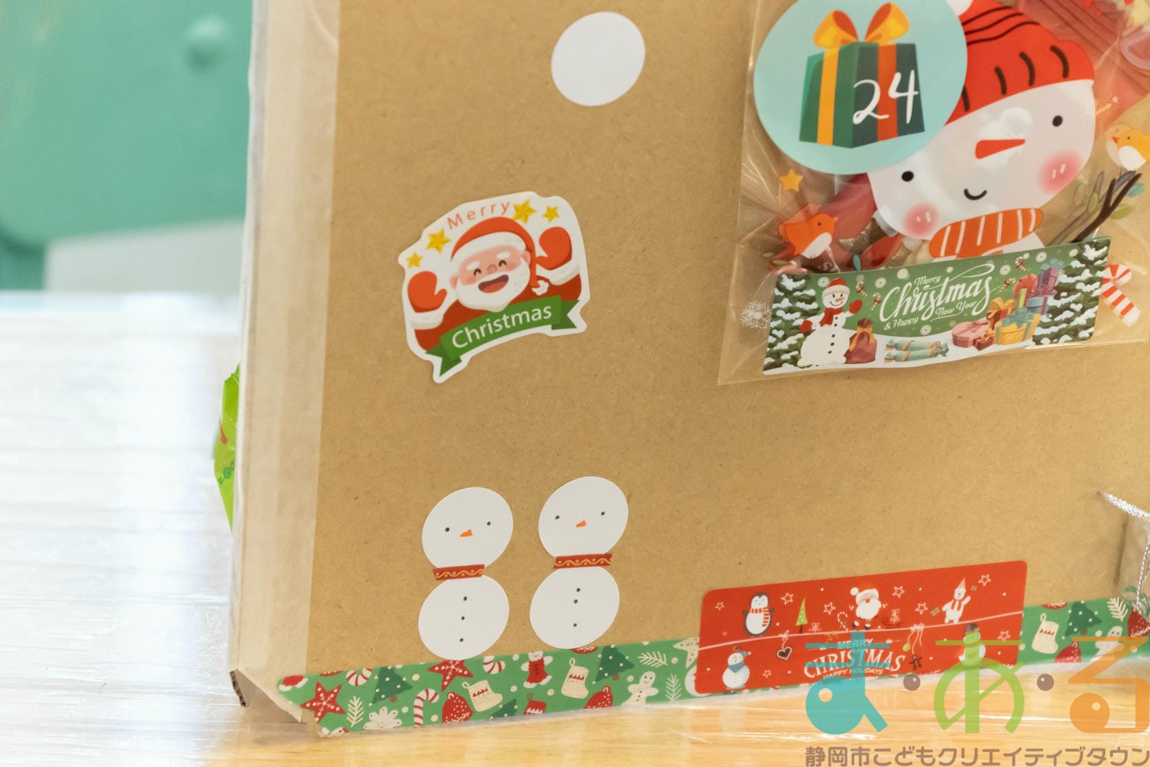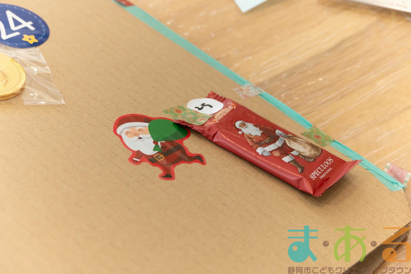 先生が用意してくださったリボンやプレゼント、シール、24個のお菓子を貼ります。