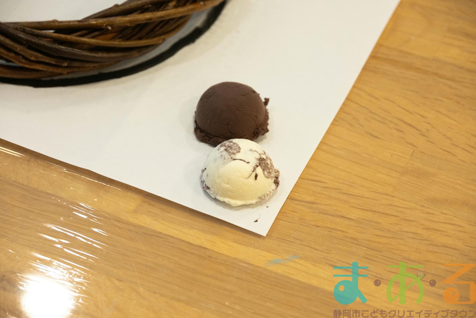 次に選んだ紙粘土の色で、アイスクリーム作りに挑戦しました。先生にレクチャーを受けながら真剣に作っていきます。