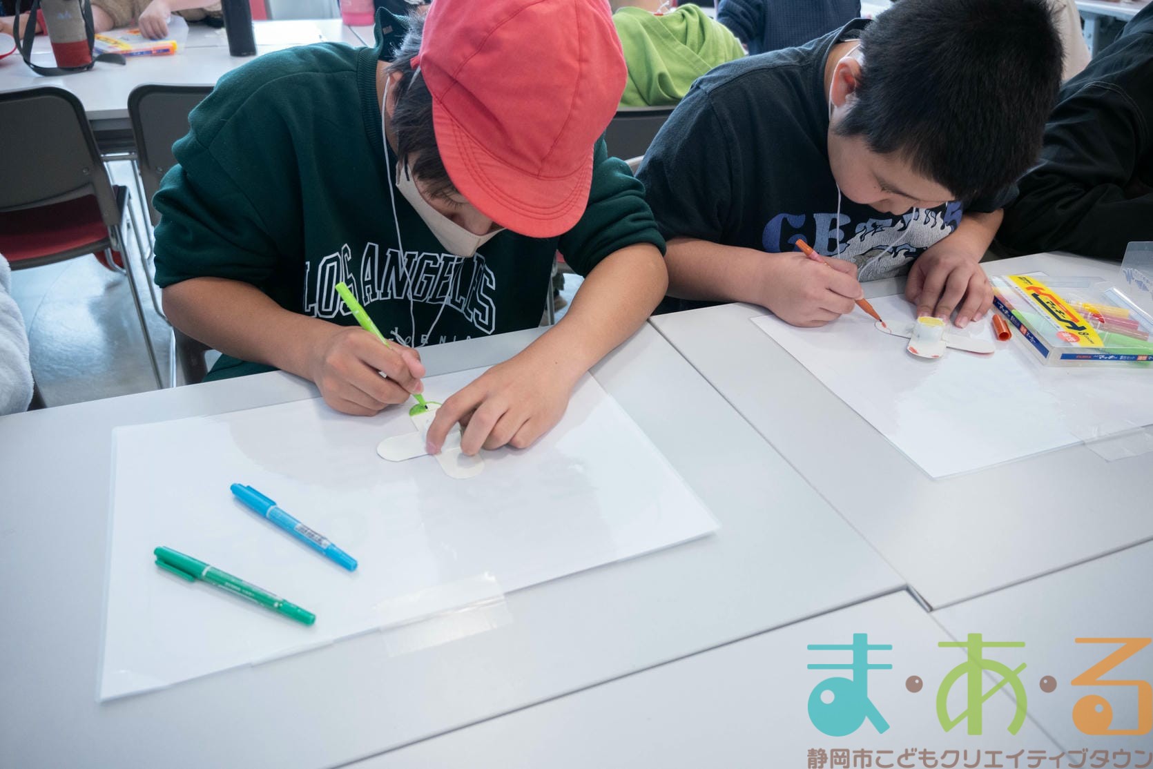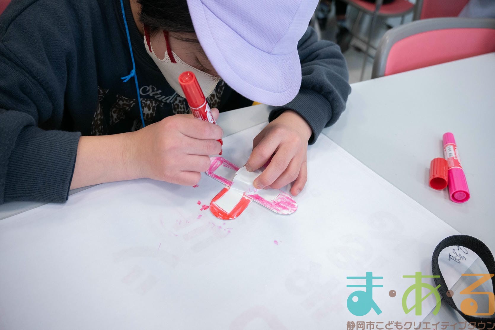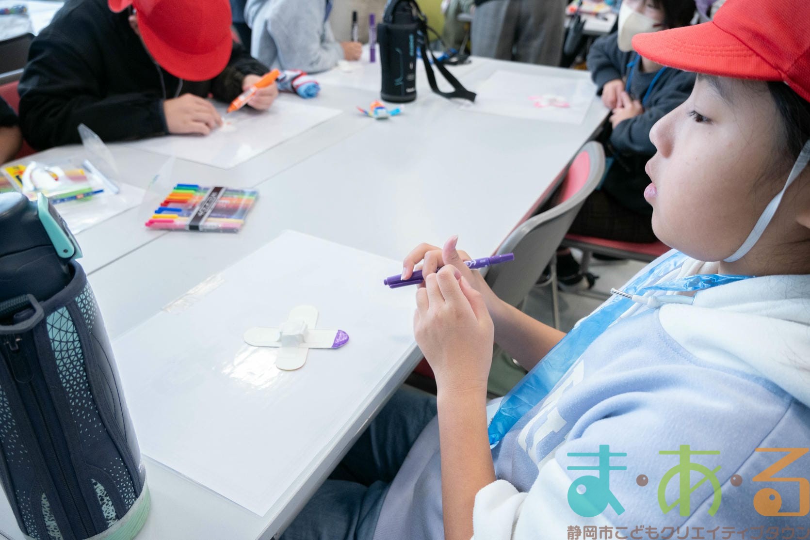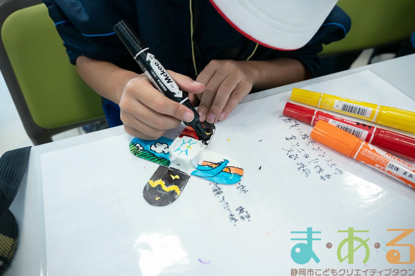 組み立てが終わったら、色塗りをします。思い思いのイラスト、模様を描いていました。