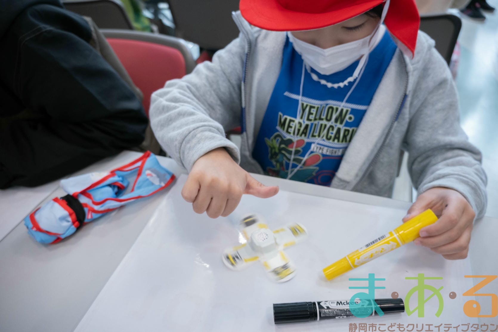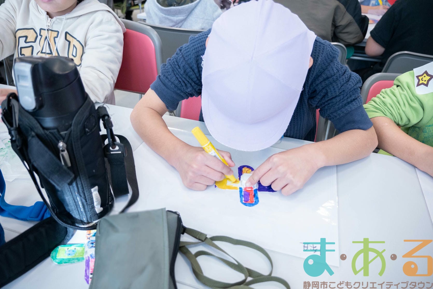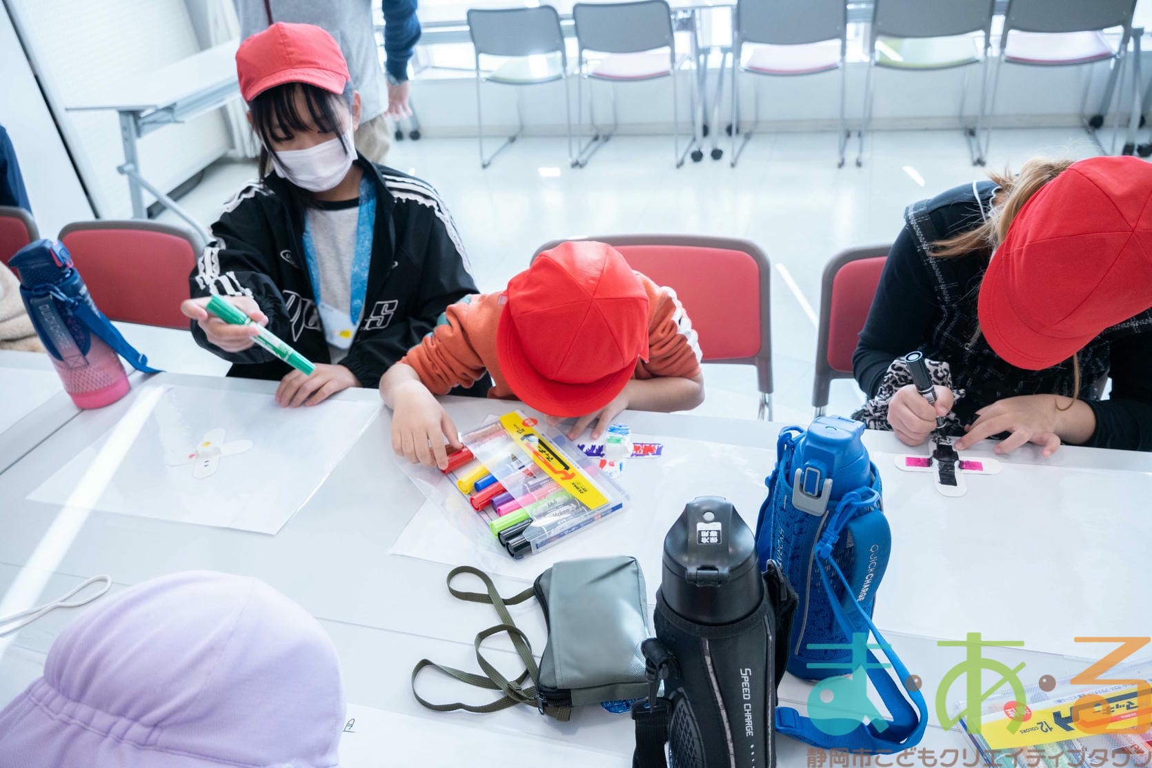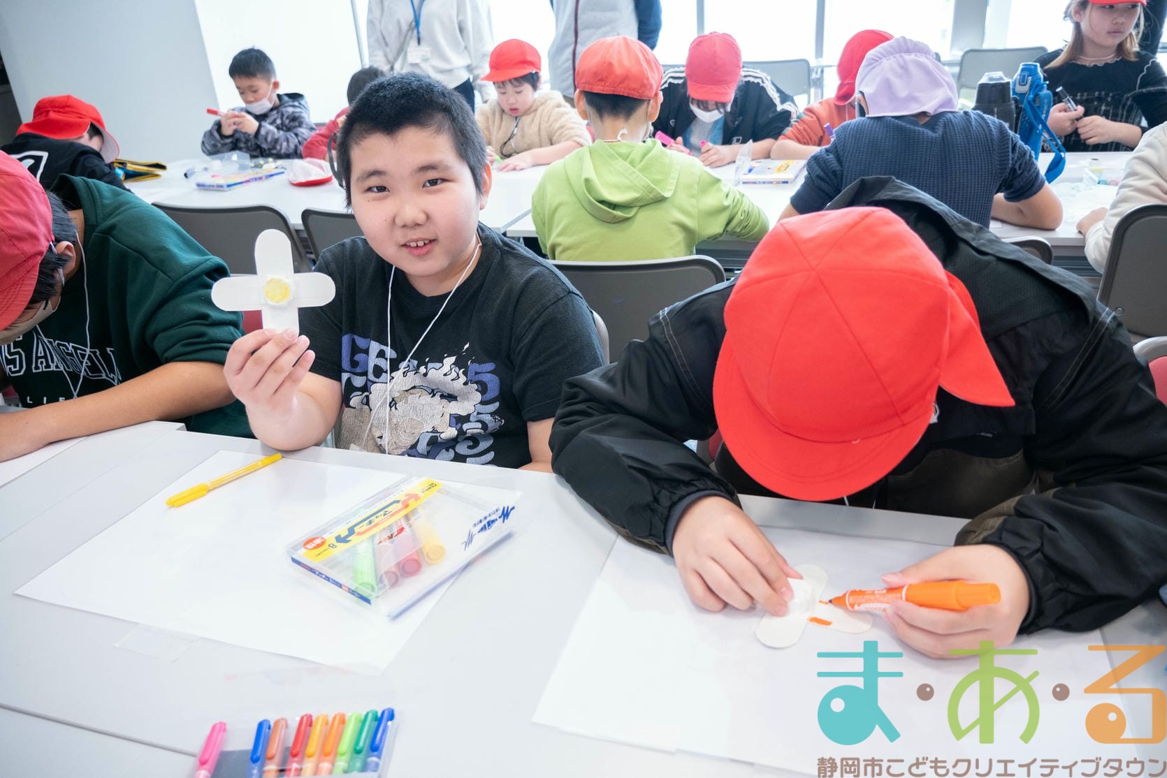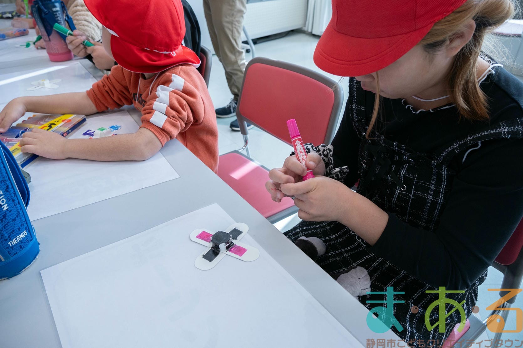 組み立てが終わったら、色塗りをします。思い思いのイラスト、模様を描いていました。