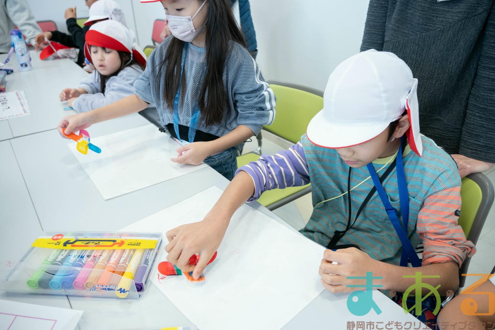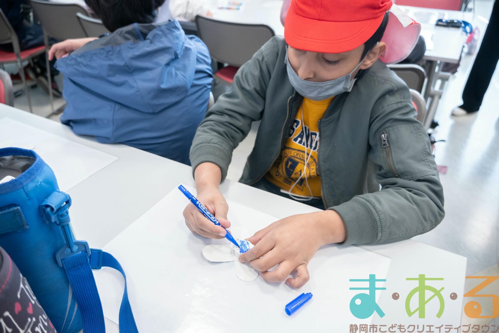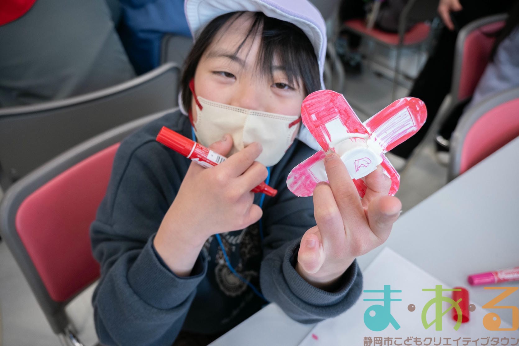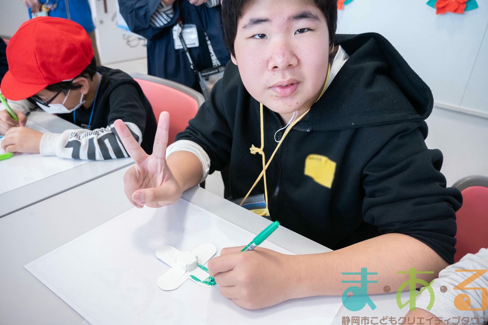 組み立てが終わったら、色塗りをします。思い思いのイラスト、模様を描いていました。