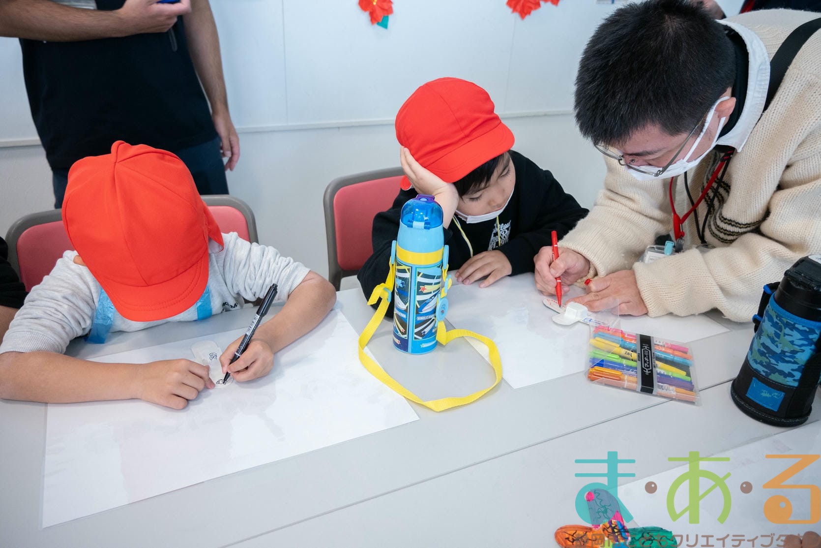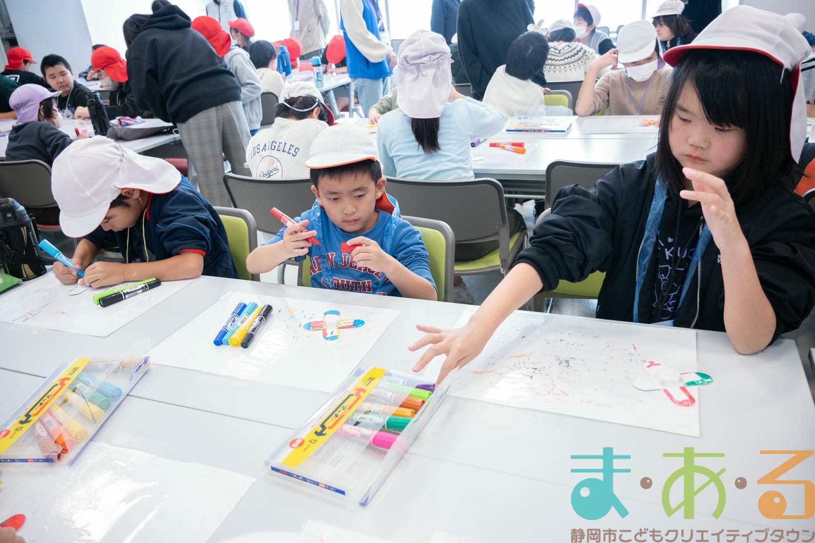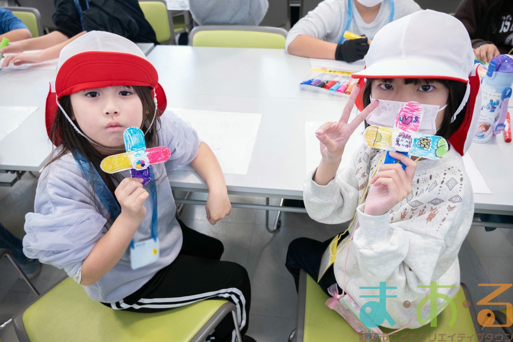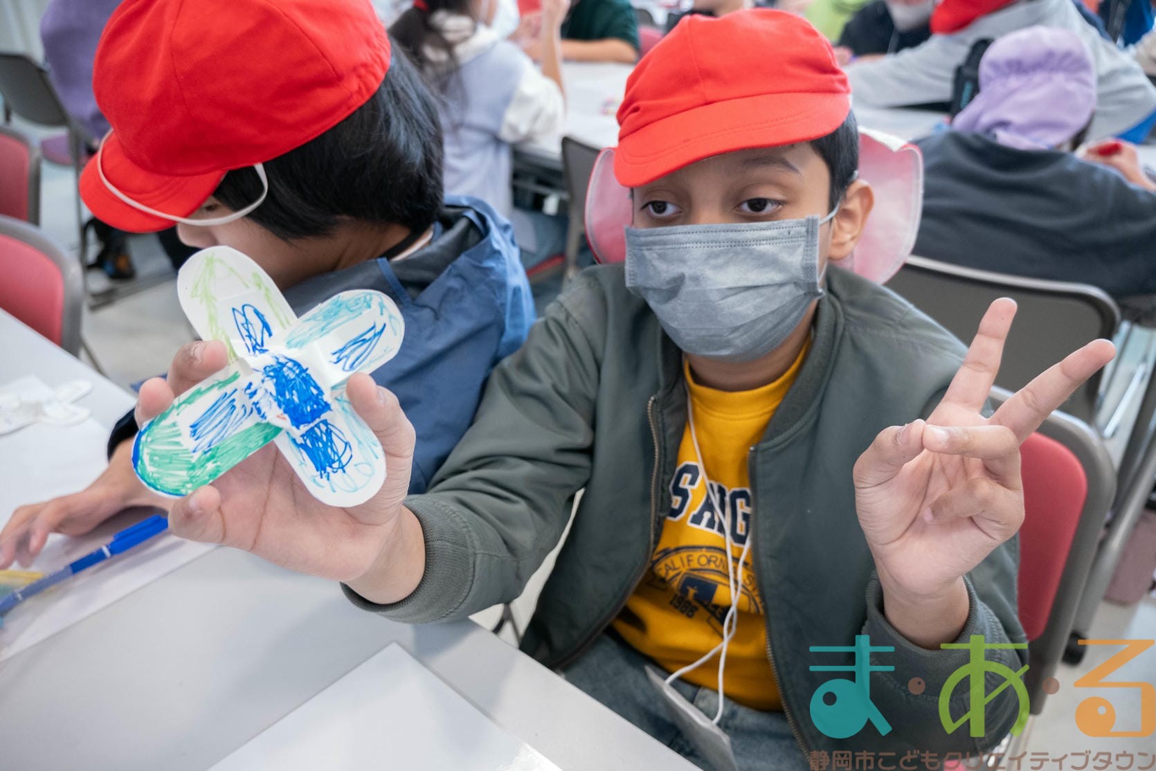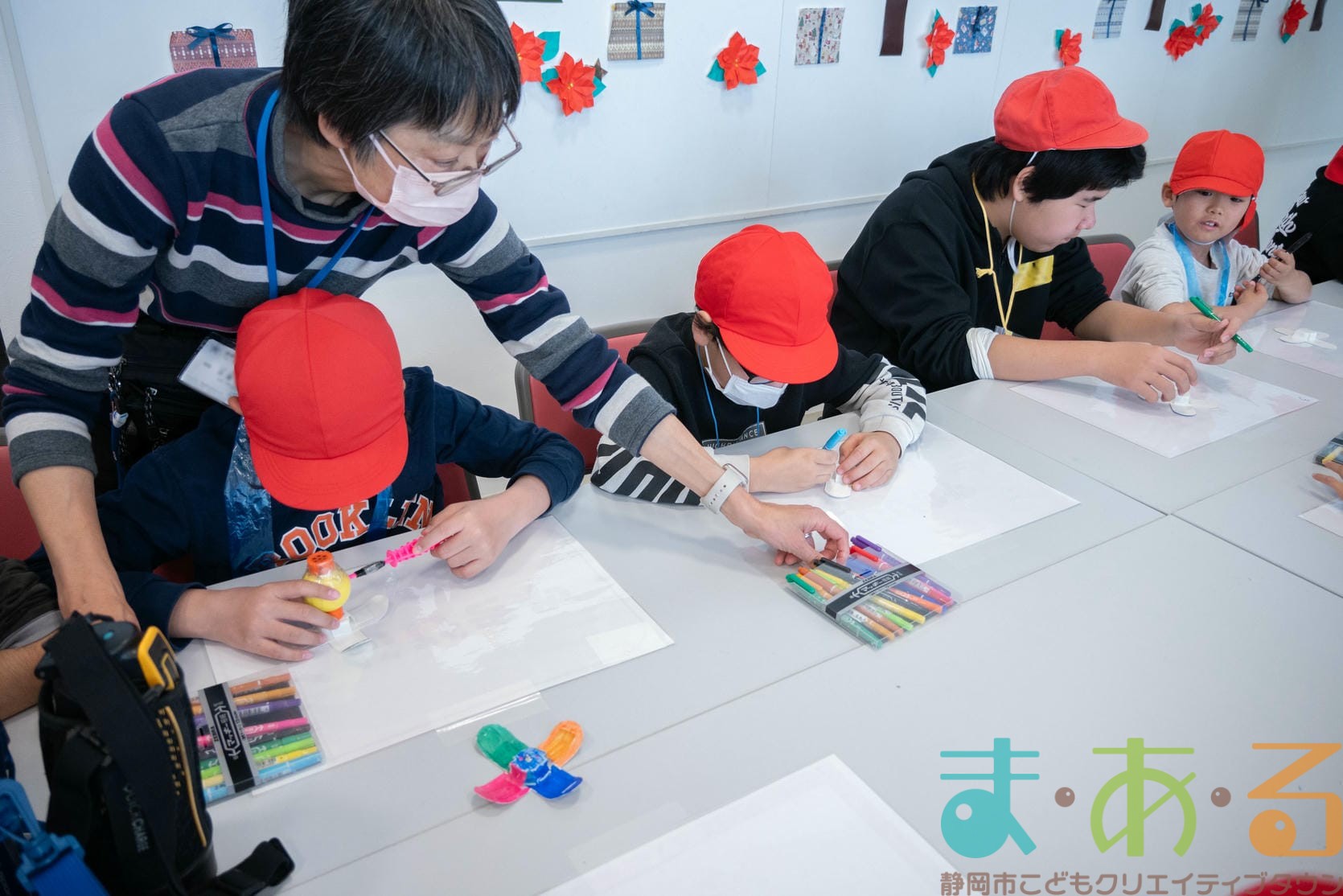 組み立てが終わったら、色塗りをします。思い思いのイラスト、模様を描いていました。