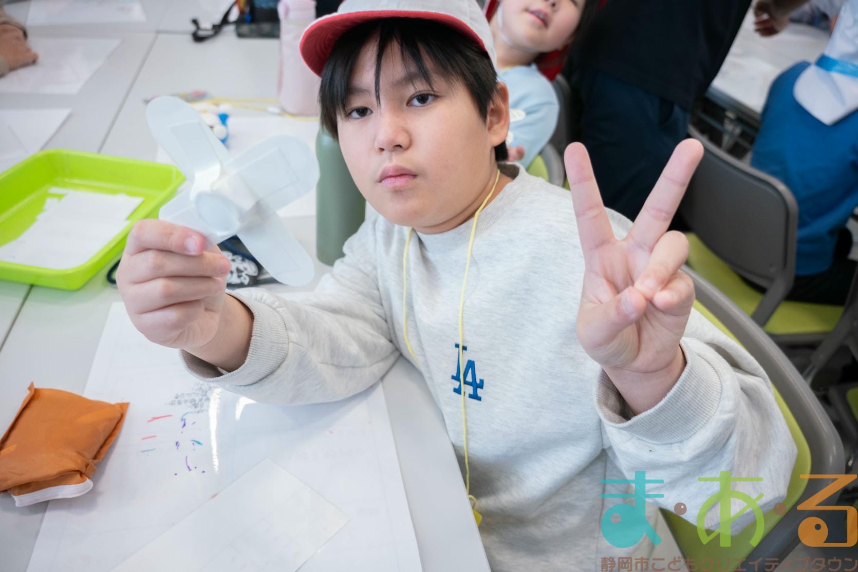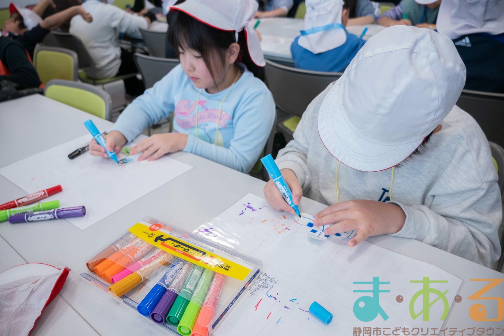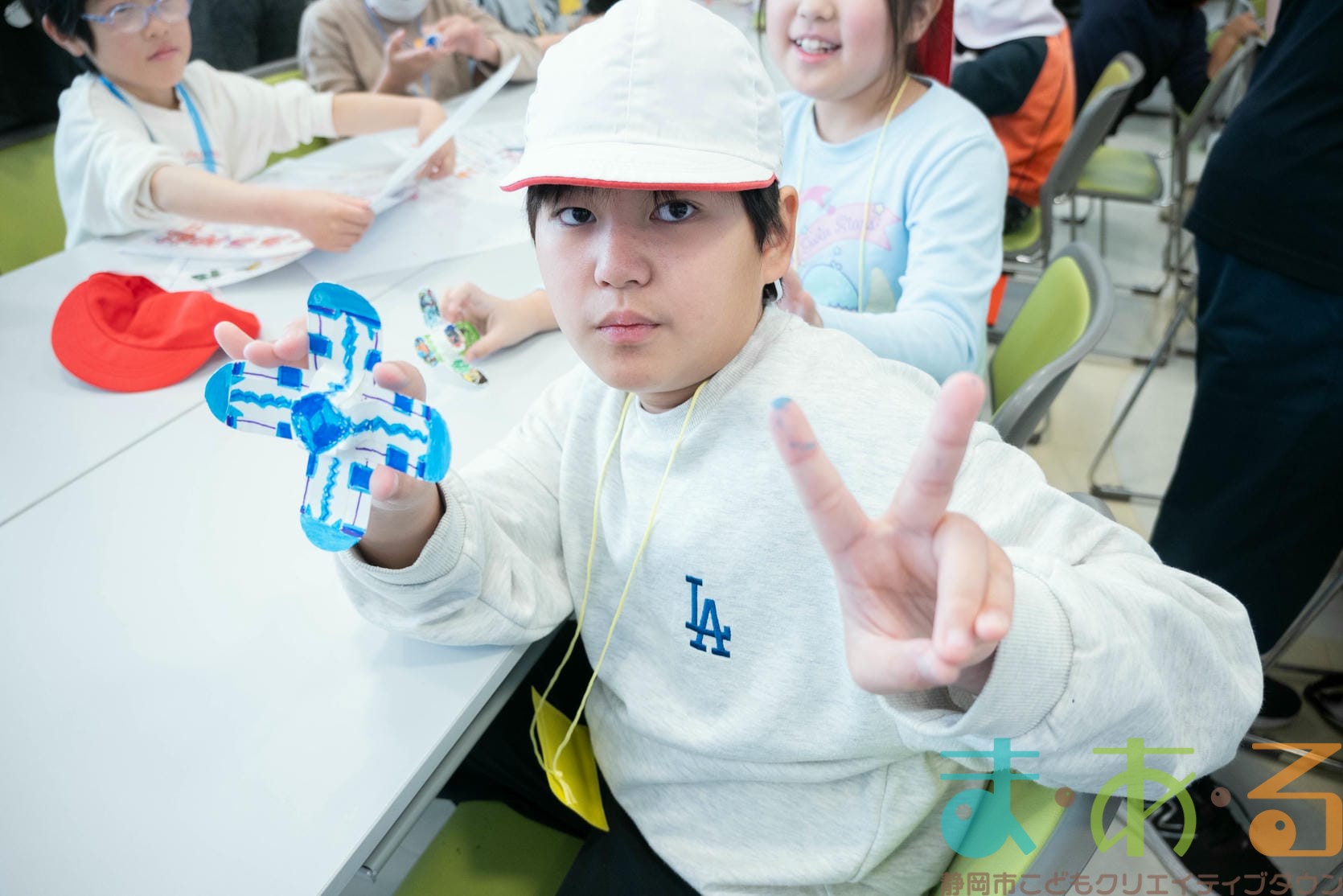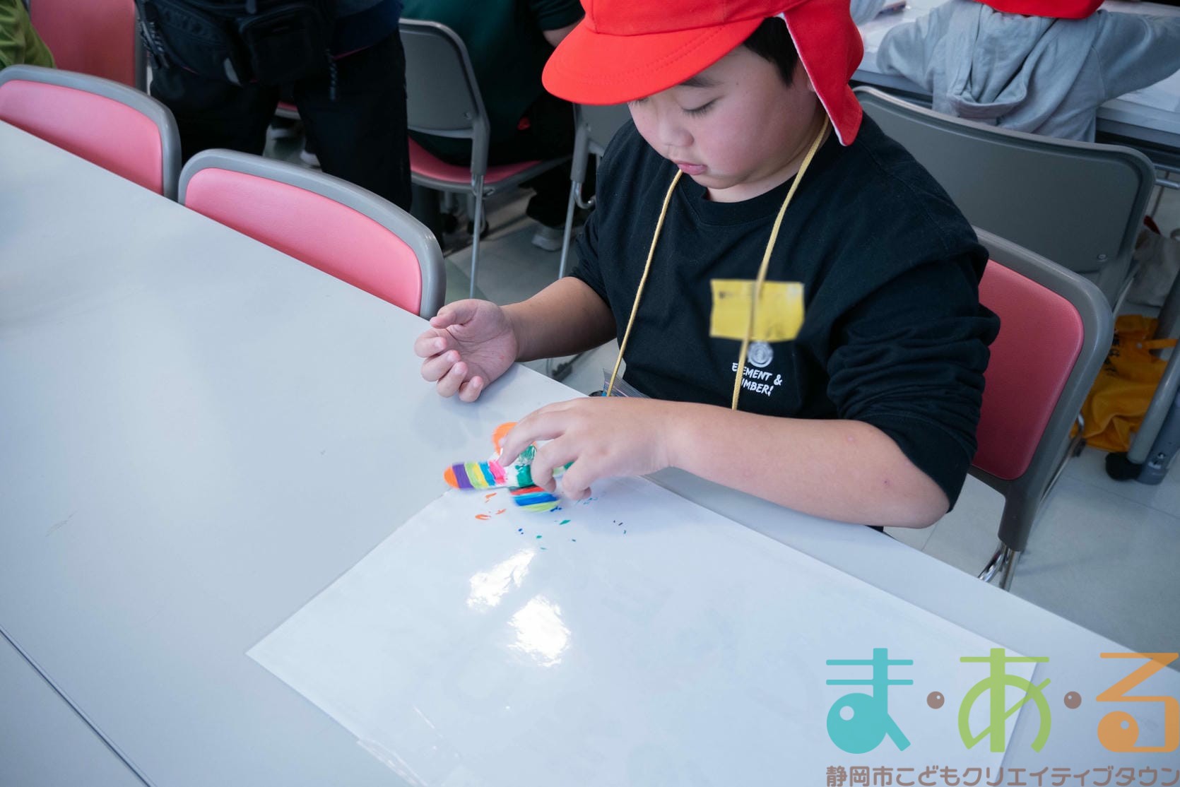組み立てが終わったら、色塗りをします。思い思いのイラスト、模様を描いていました。