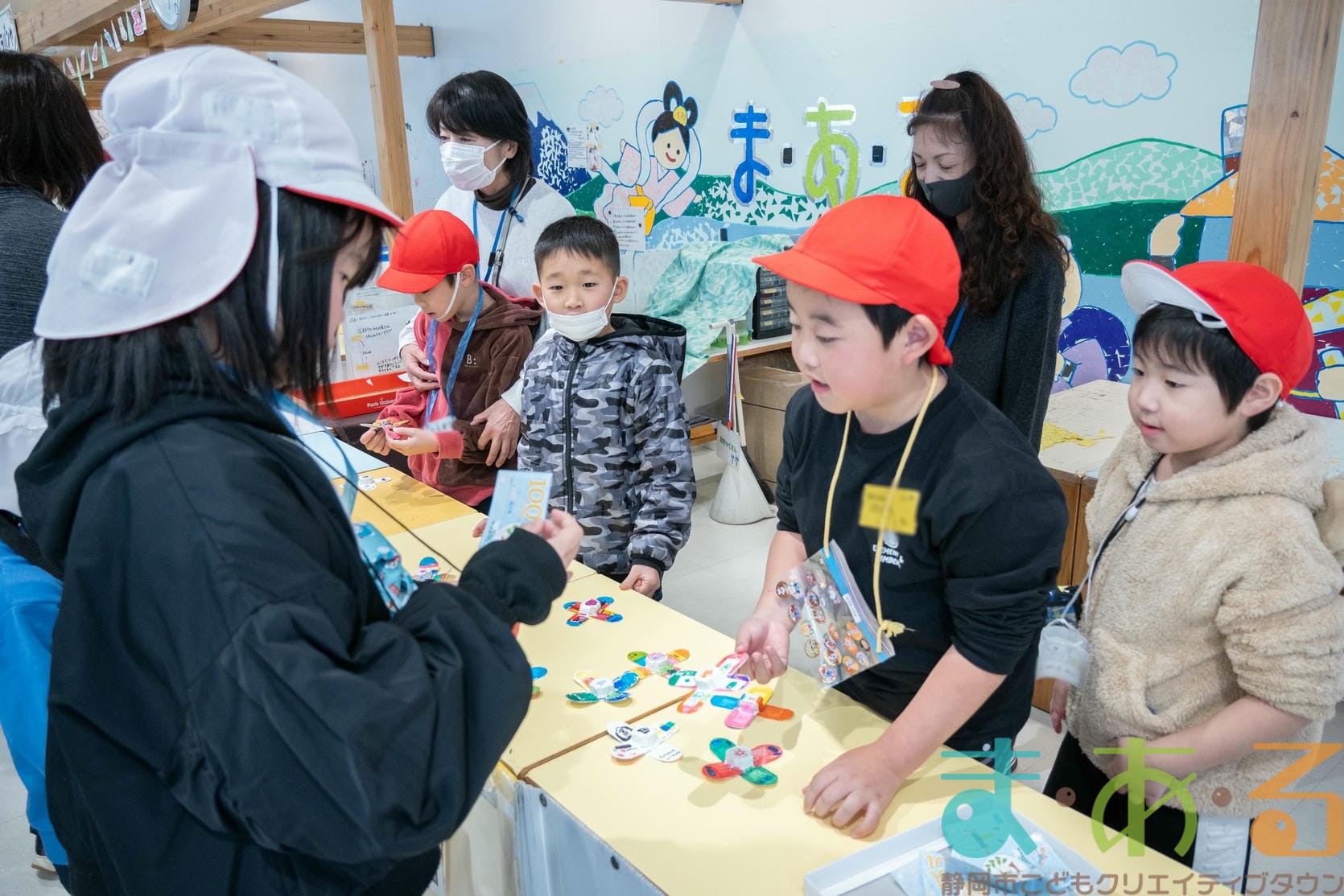 商品作りを頑張ったみなさんに300まあるのお給料をお渡ししました。好きなお店でお買い物を楽しんでください!