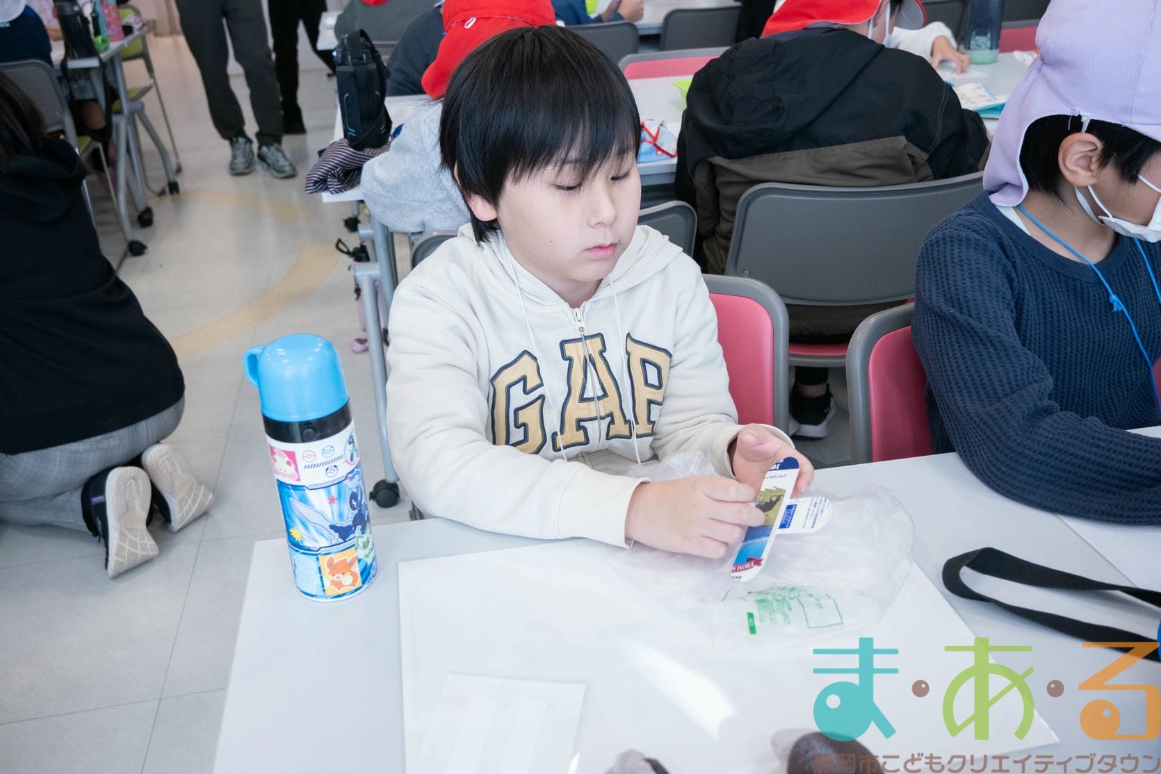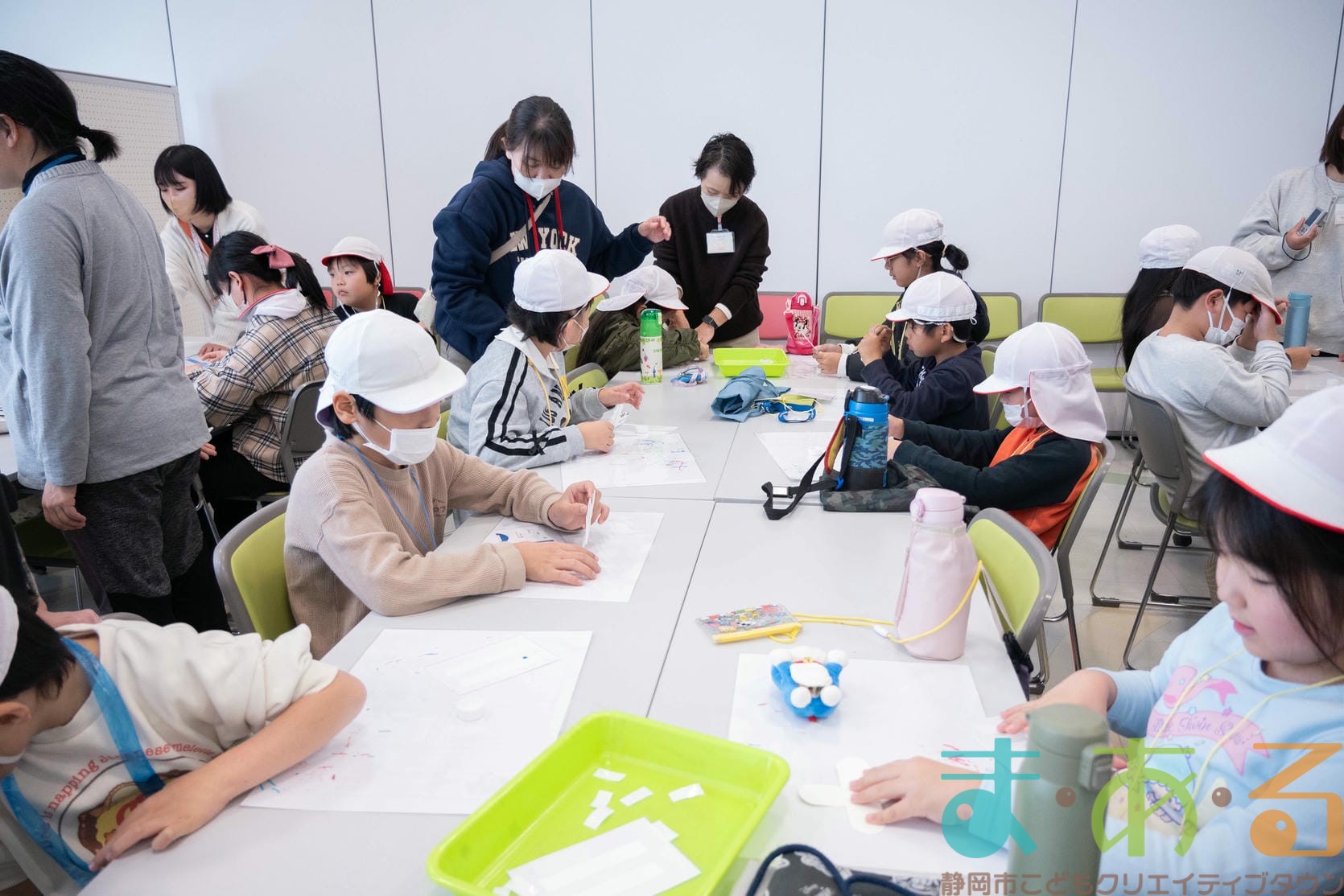 まずは4階のなんでもホールで全員で商品作りを行いました。作った商品は後でお店で販売するので、丁寧に作りましょう!