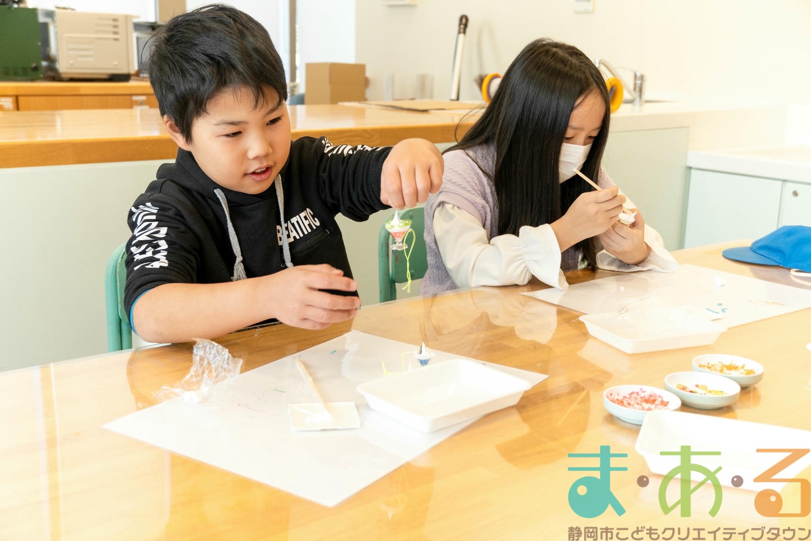 12月4日は静岡市立田町小学校の団体利用がありました。ま・あ・るスタッフによるものづくり体験として2つの作品を作りました。