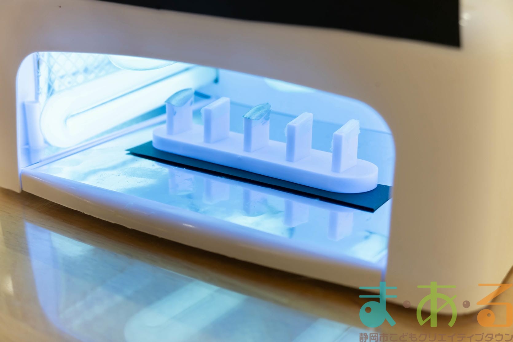 ネイルチップにカラーを塗った後、UVライトに入れてジェルを硬化させます。