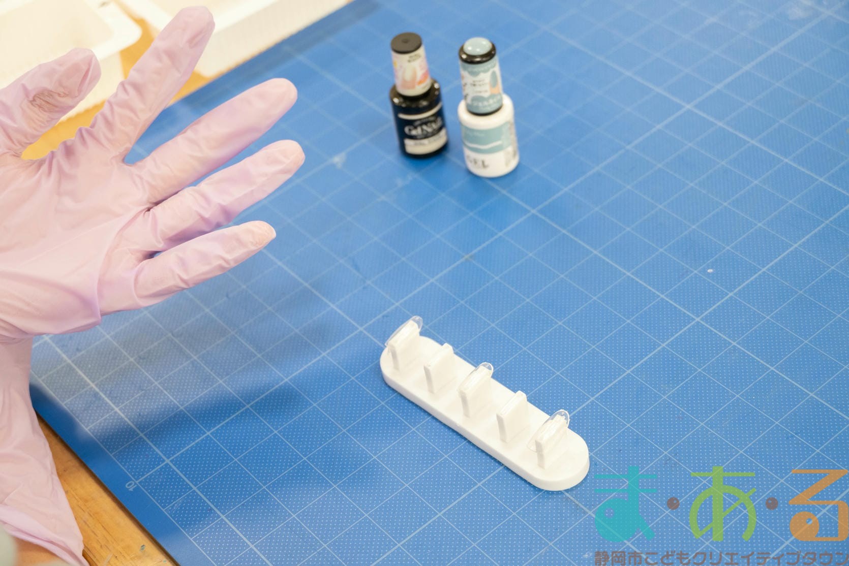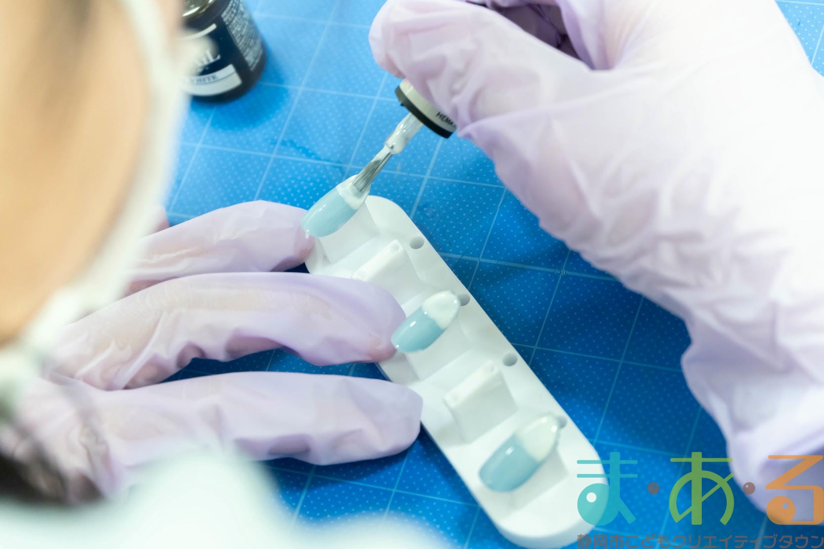手袋をはめて、好きなカラージェルを塗っていきます。
