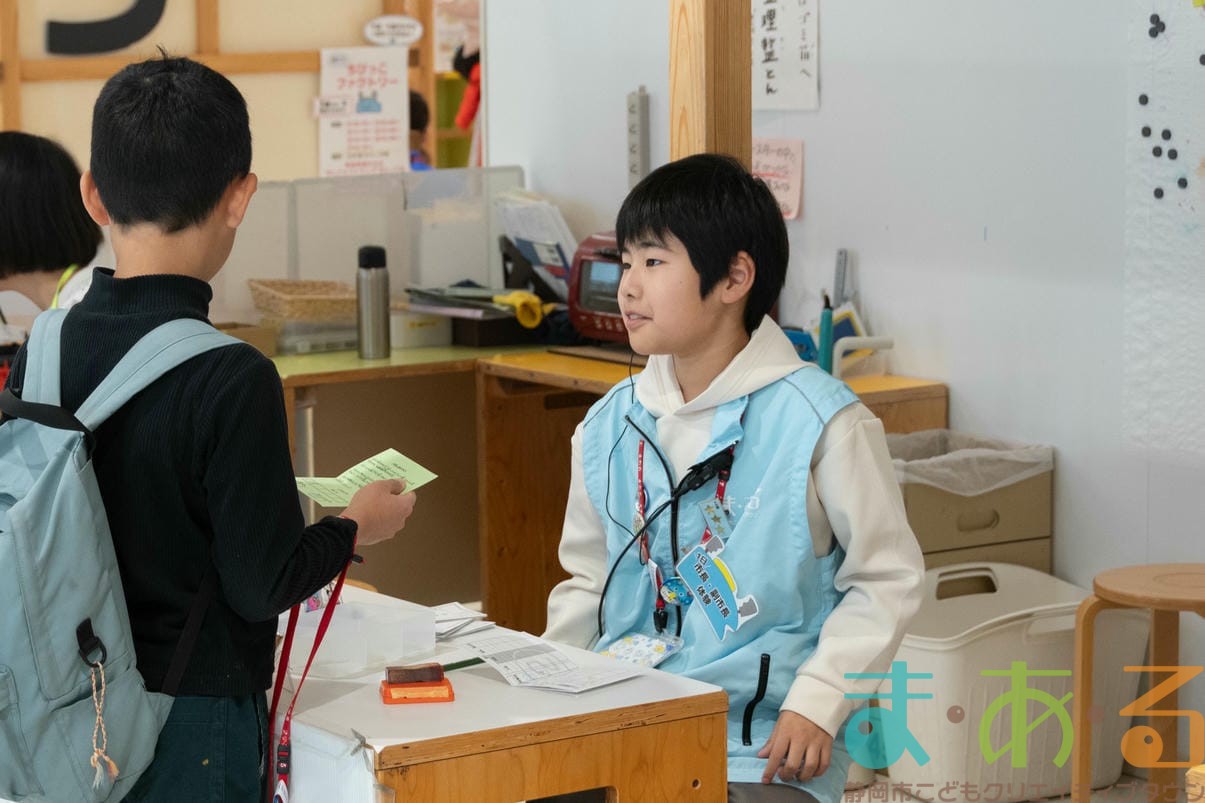 ハローワークのこども店長の声掛けに合わせて、丁寧に渡すことができていました。