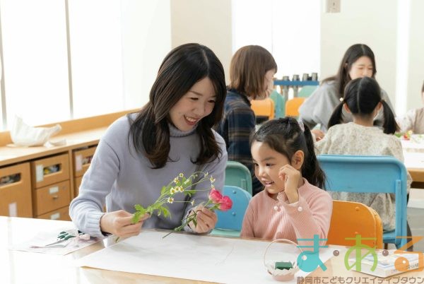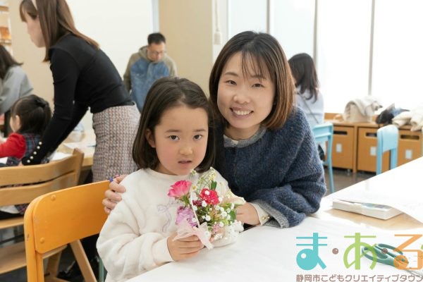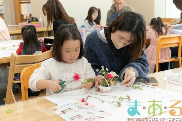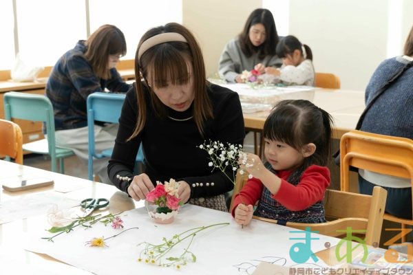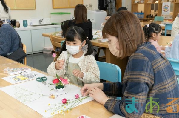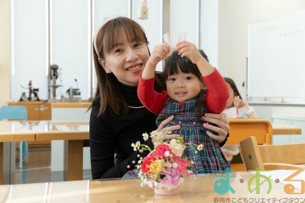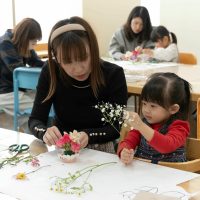 1月18日は、花のあるくらし研究所のあやっち先生、さおちゃん先生にご協力いただき、未就学児親子講座『はじめてのお花教室』を開催しました。