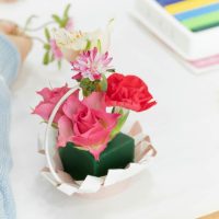 ここからは、お花を自由に組み合わせてミニブーケを作っていきます。