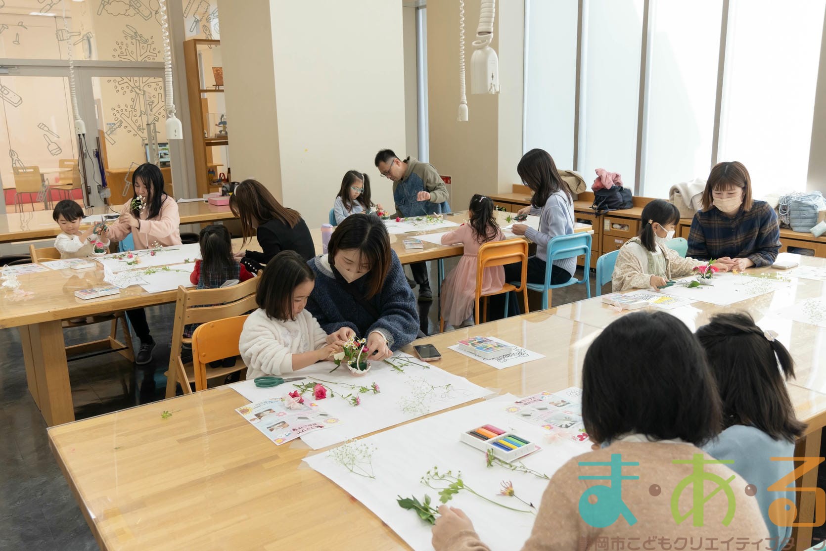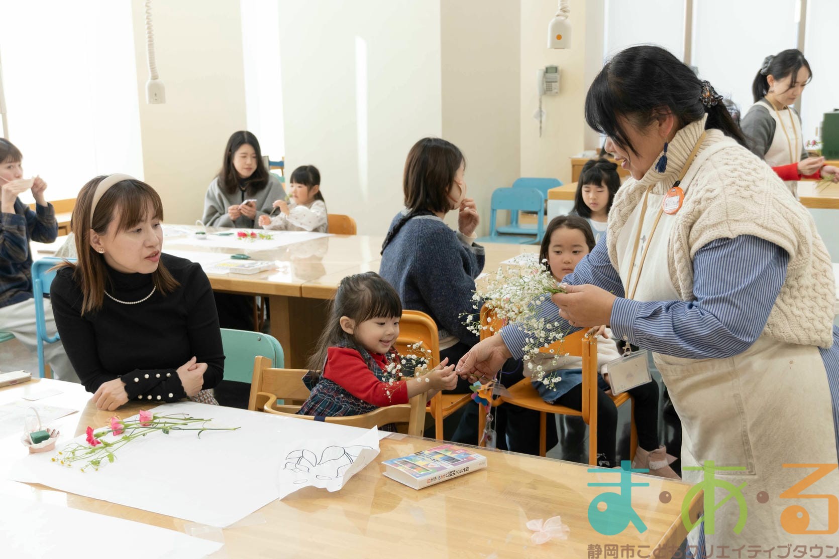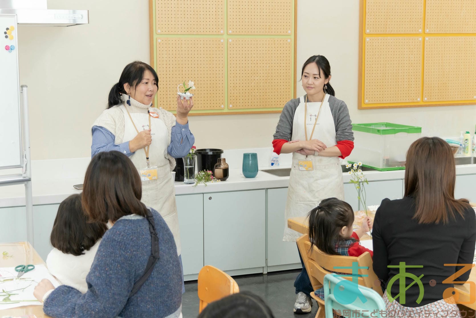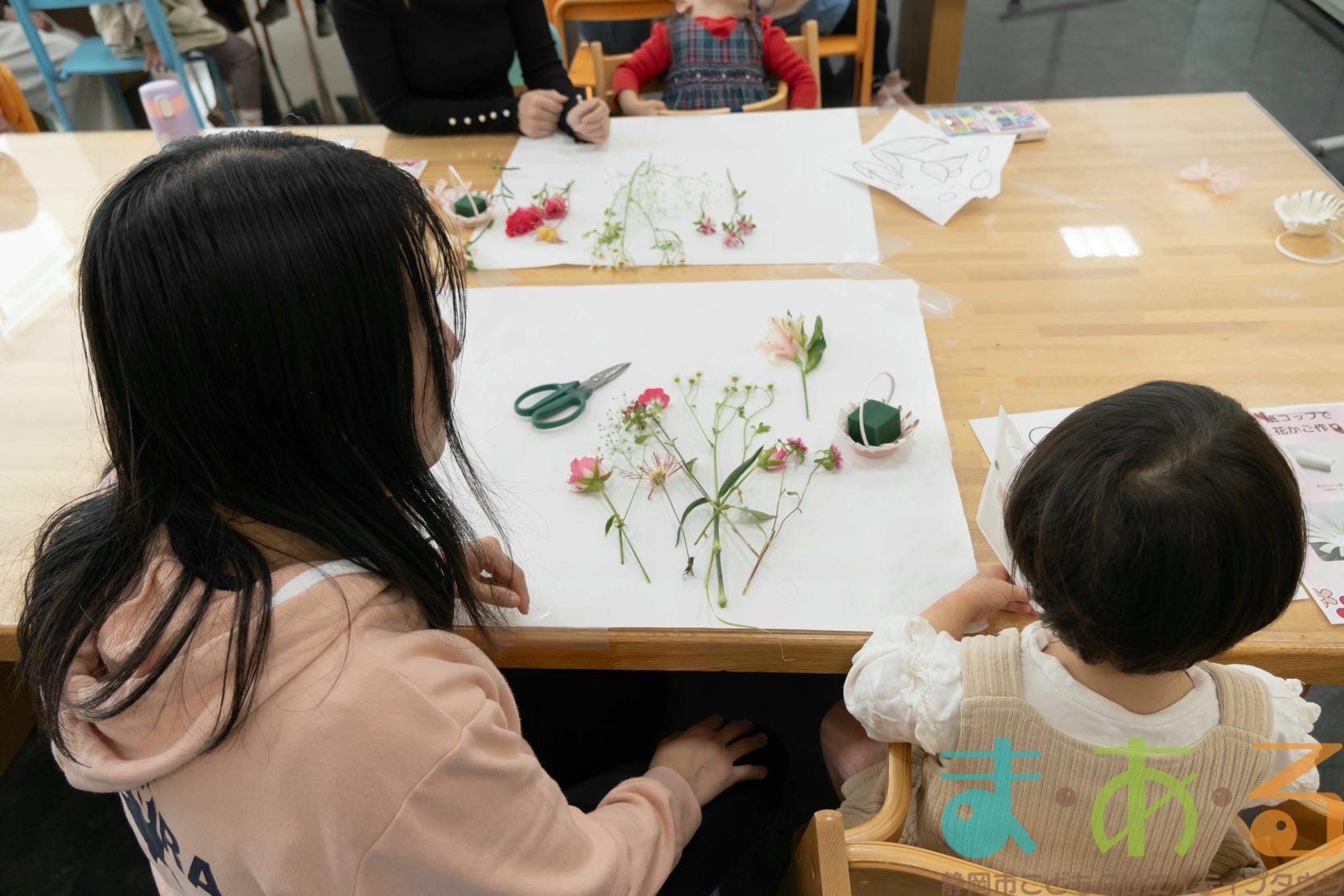 1月18日は、花のあるくらし研究所のあやっち先生、さおちゃん先生にご協力いただき、未就学児親子講座『はじめてのお花教室』を開催しました。