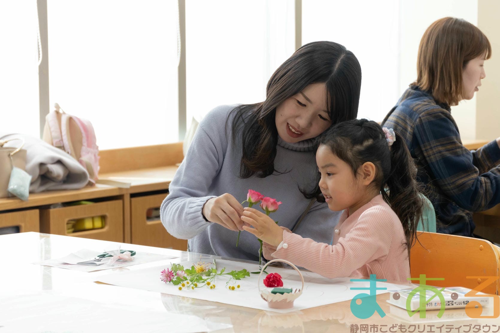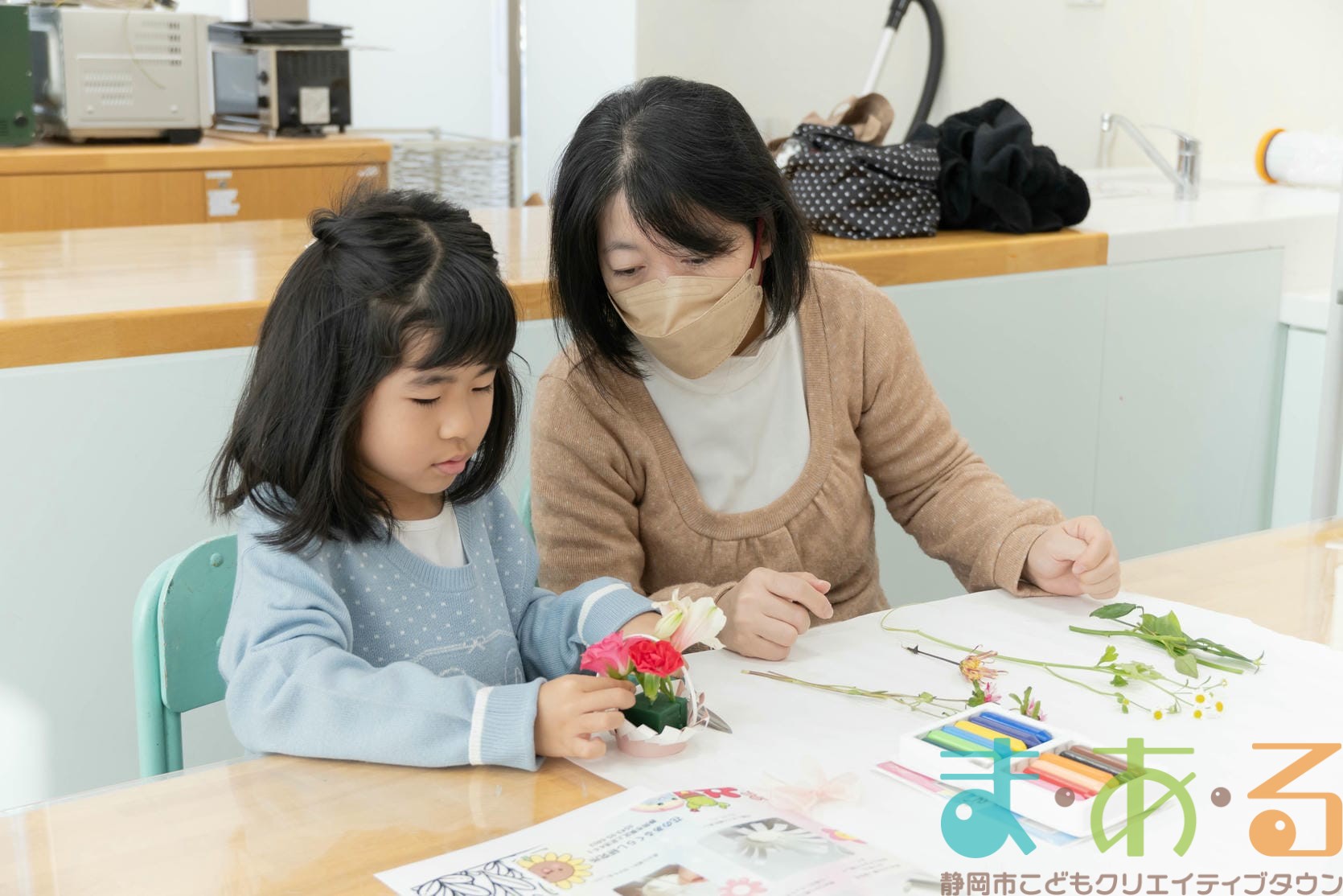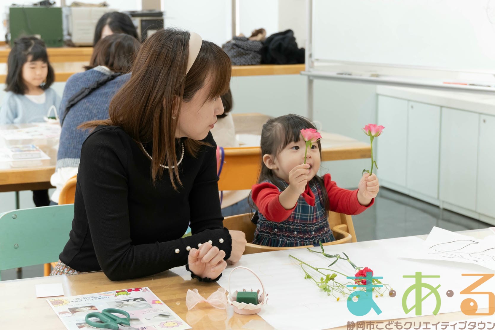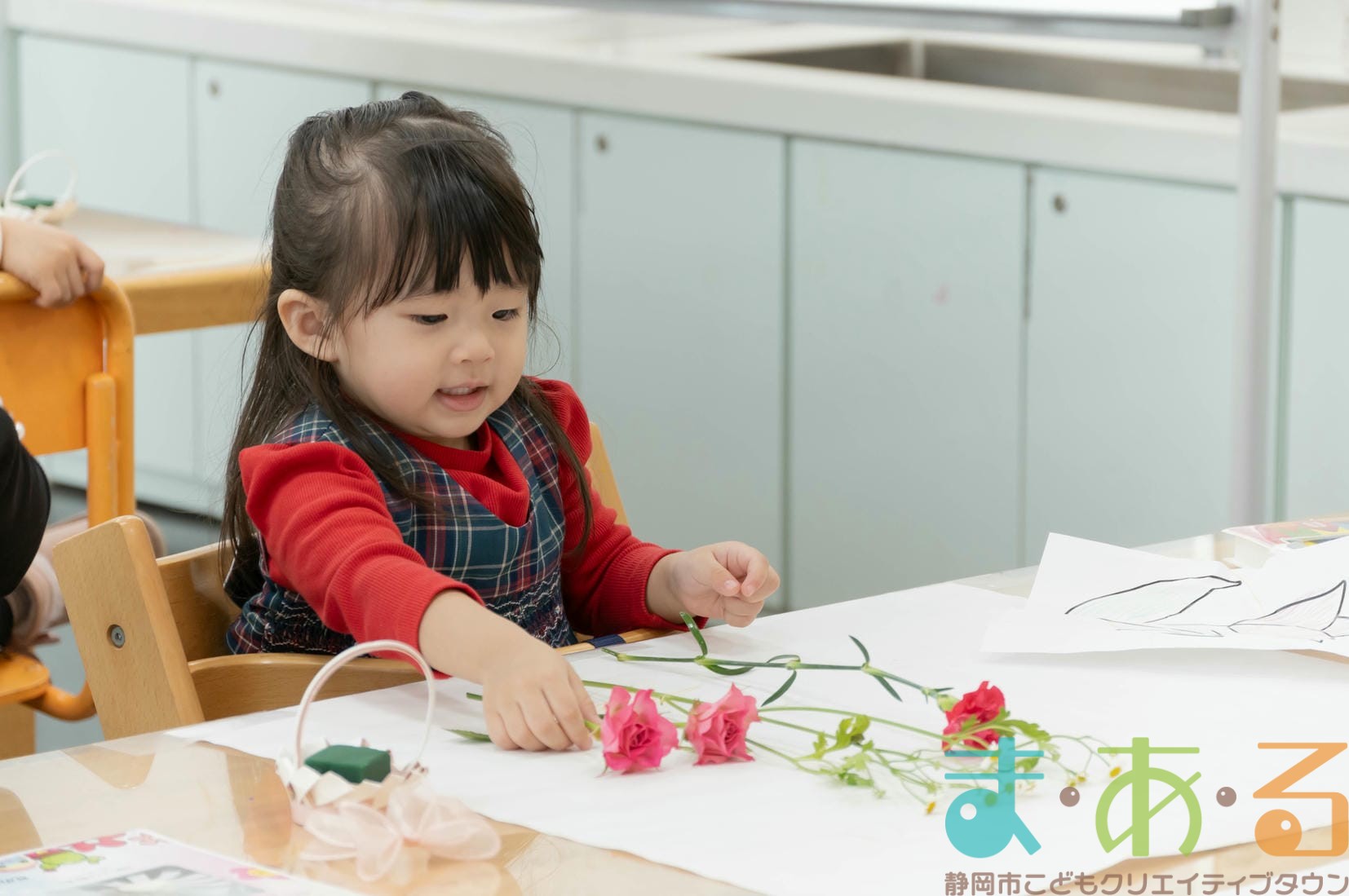 1月18日は、花のあるくらし研究所のあやっち先生、さおちゃん先生にご協力いただき、未就学児親子講座『はじめてのお花教室』を開催しました。
