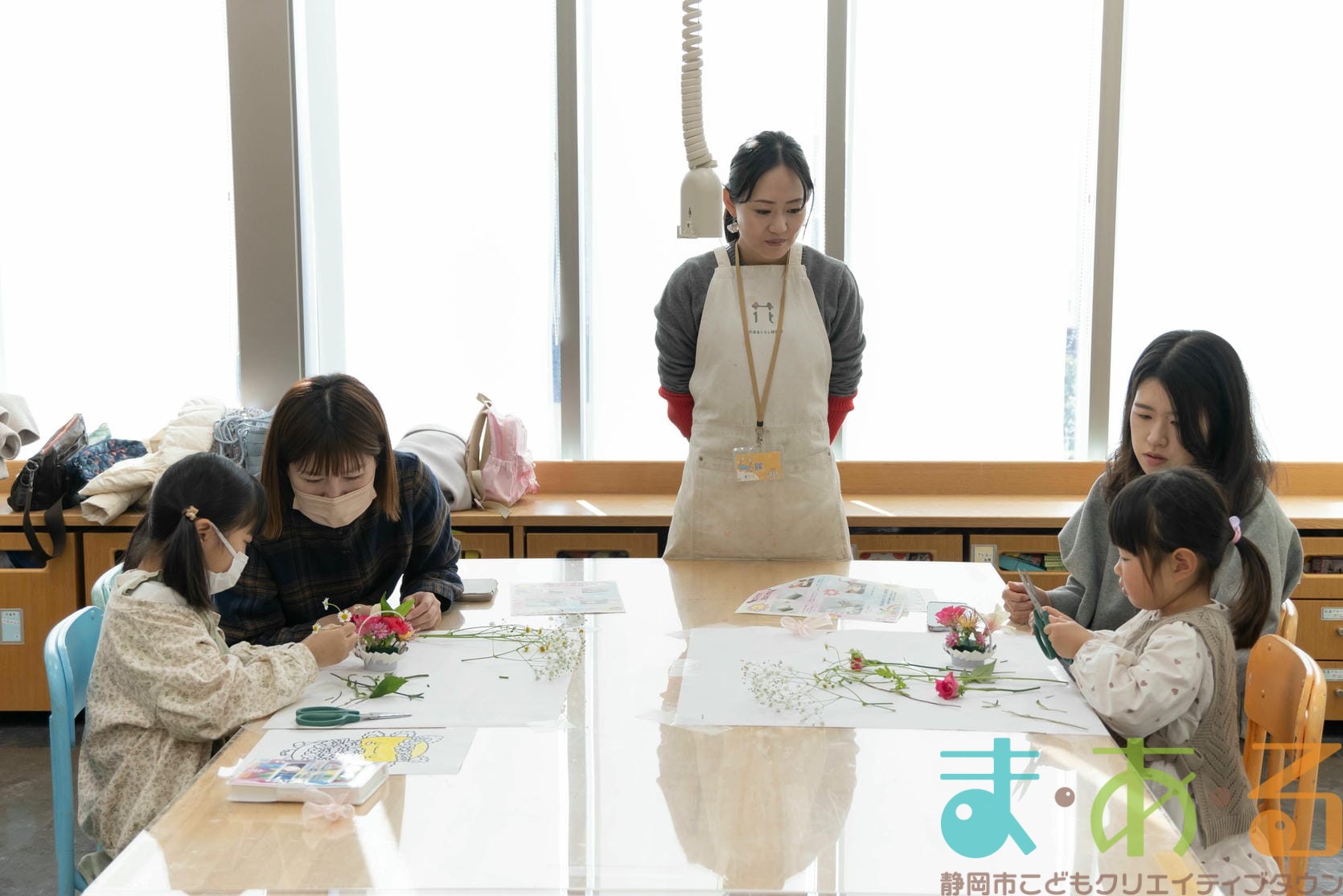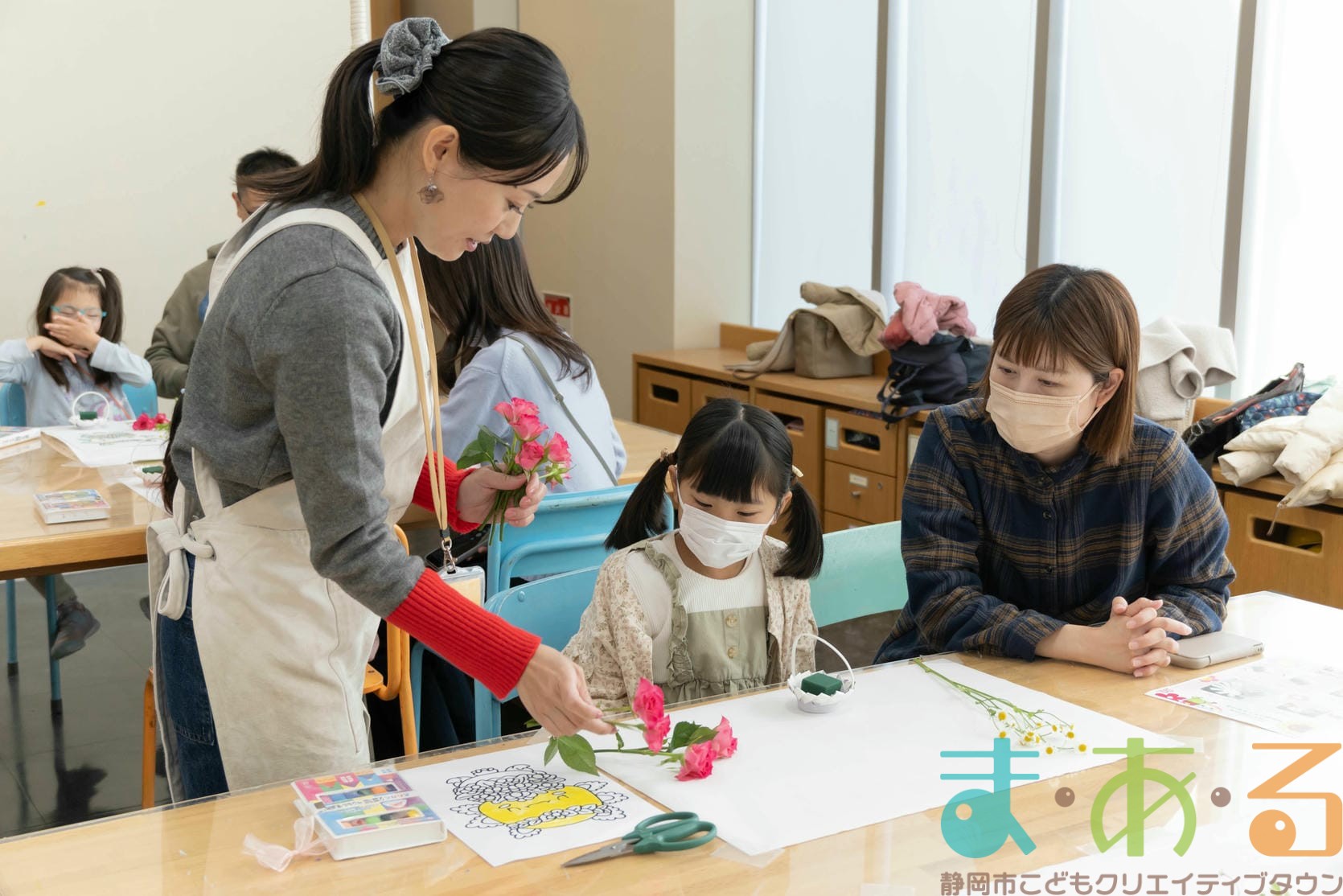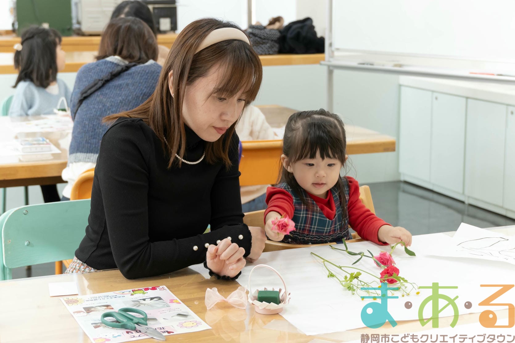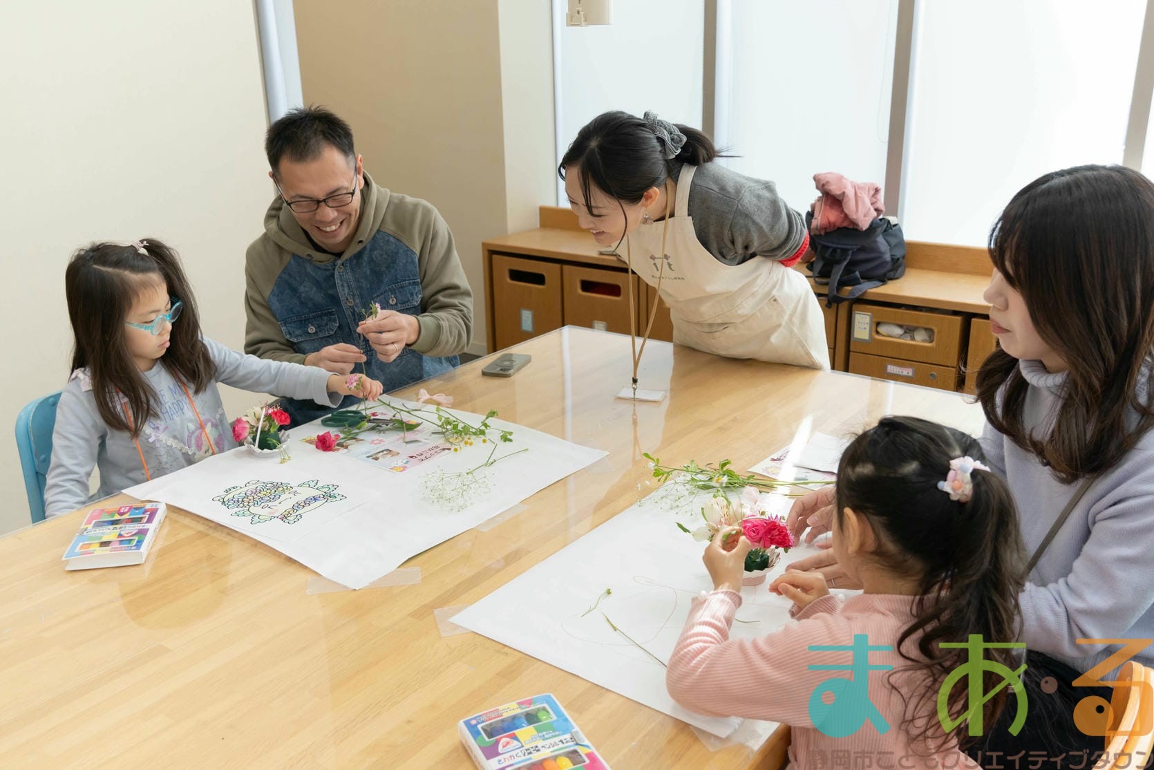 1月18日は、花のあるくらし研究所のあやっち先生、さおちゃん先生にご協力いただき、未就学児親子講座『はじめてのお花教室』を開催しました。