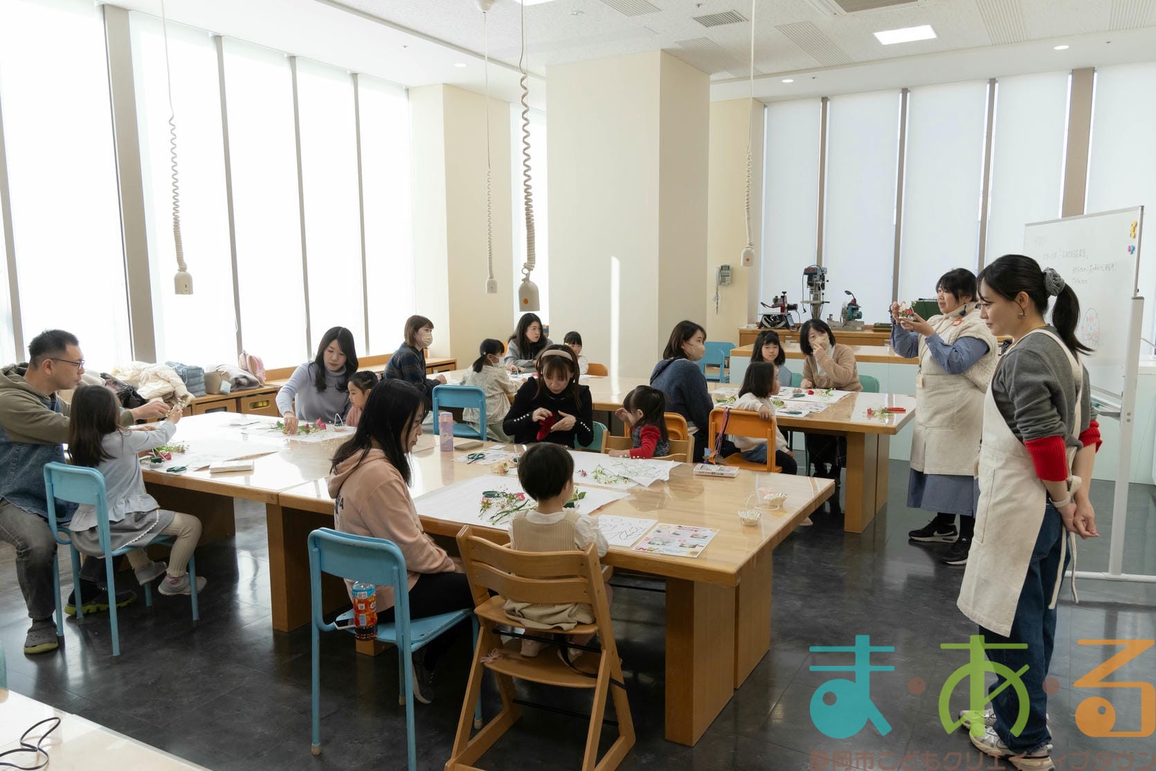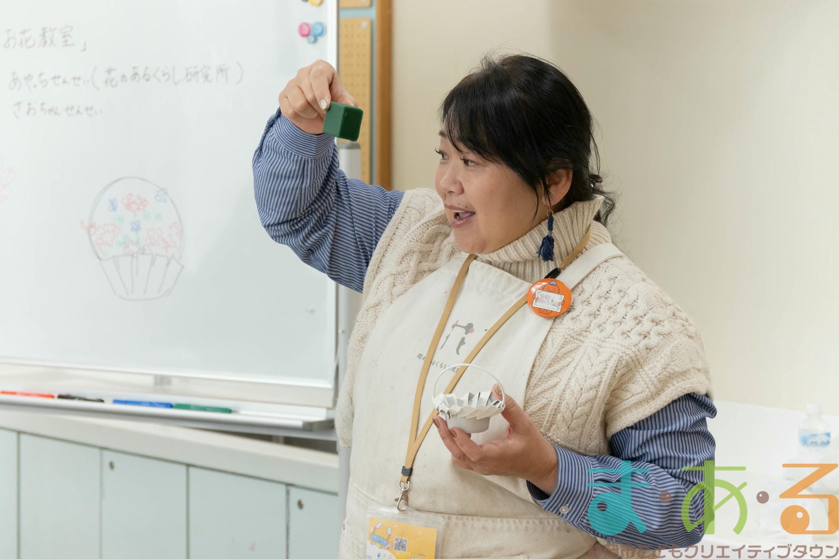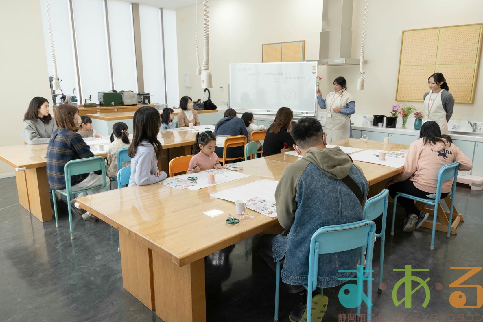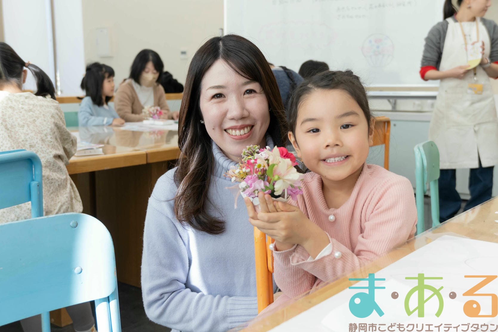 1月18日は、花のあるくらし研究所のあやっち先生、さおちゃん先生にご協力いただき、未就学児親子講座『はじめてのお花教室』を開催しました。