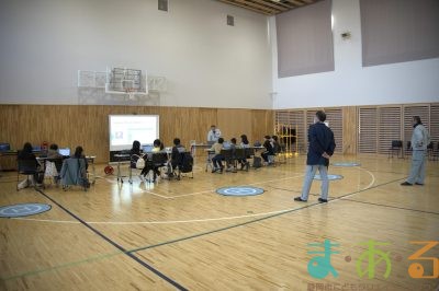 ドローン会場となる体育館へ移動し、ドローン制御の講座がスタートです。