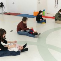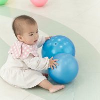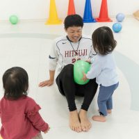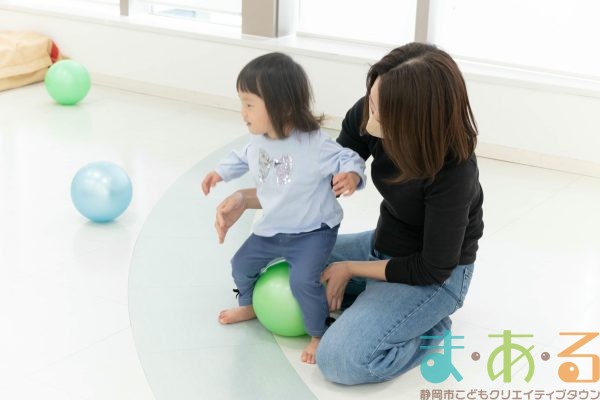 ふれあい遊びでは、ハイハイの動きや股関節を開く座り方でバランス感覚を養います。