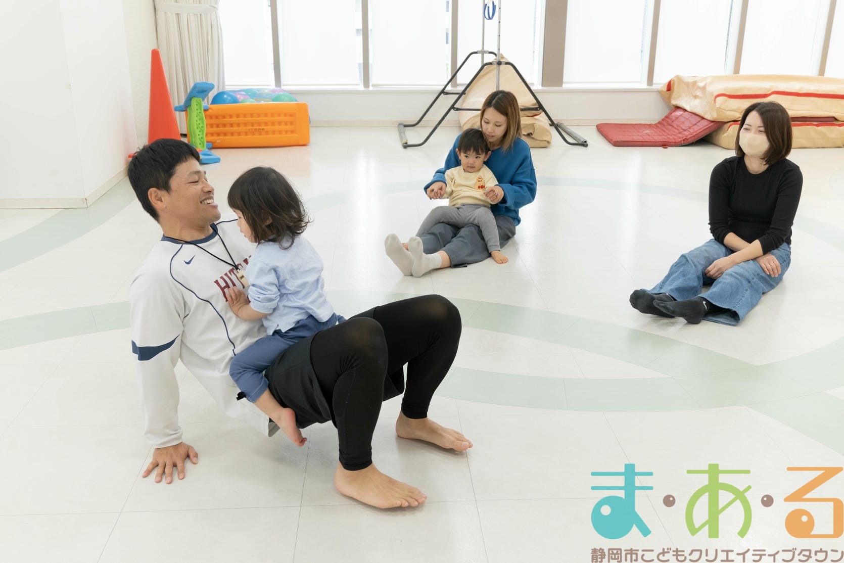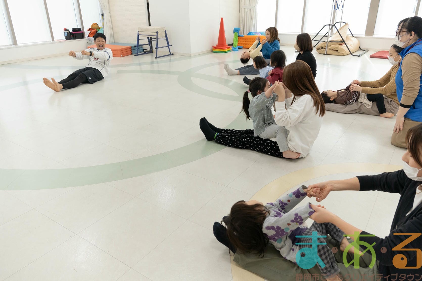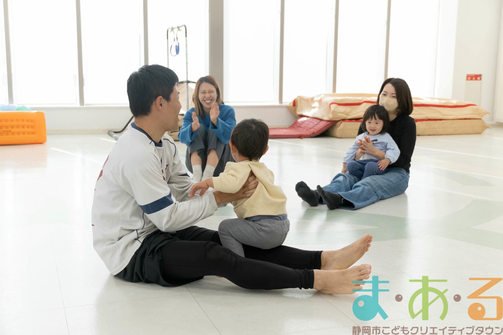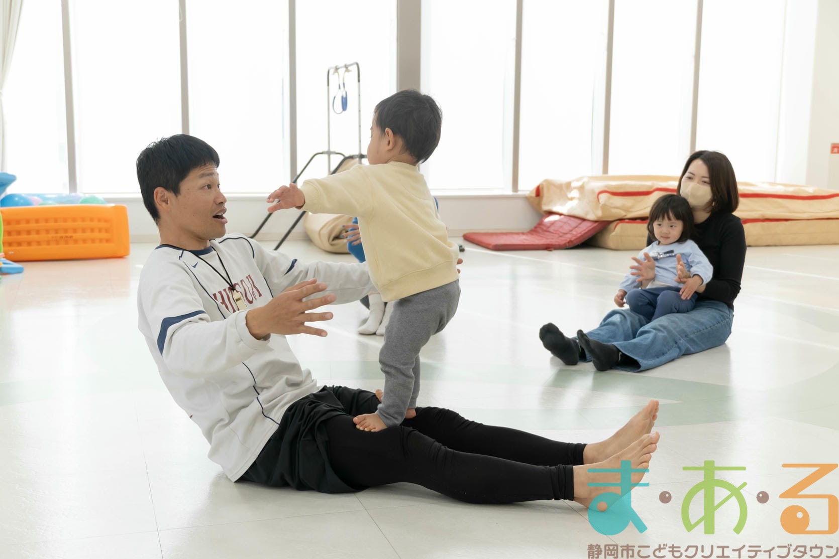 ふれあい遊びでは、ハイハイの動きや股関節を開く座り方でバランス感覚を養います。