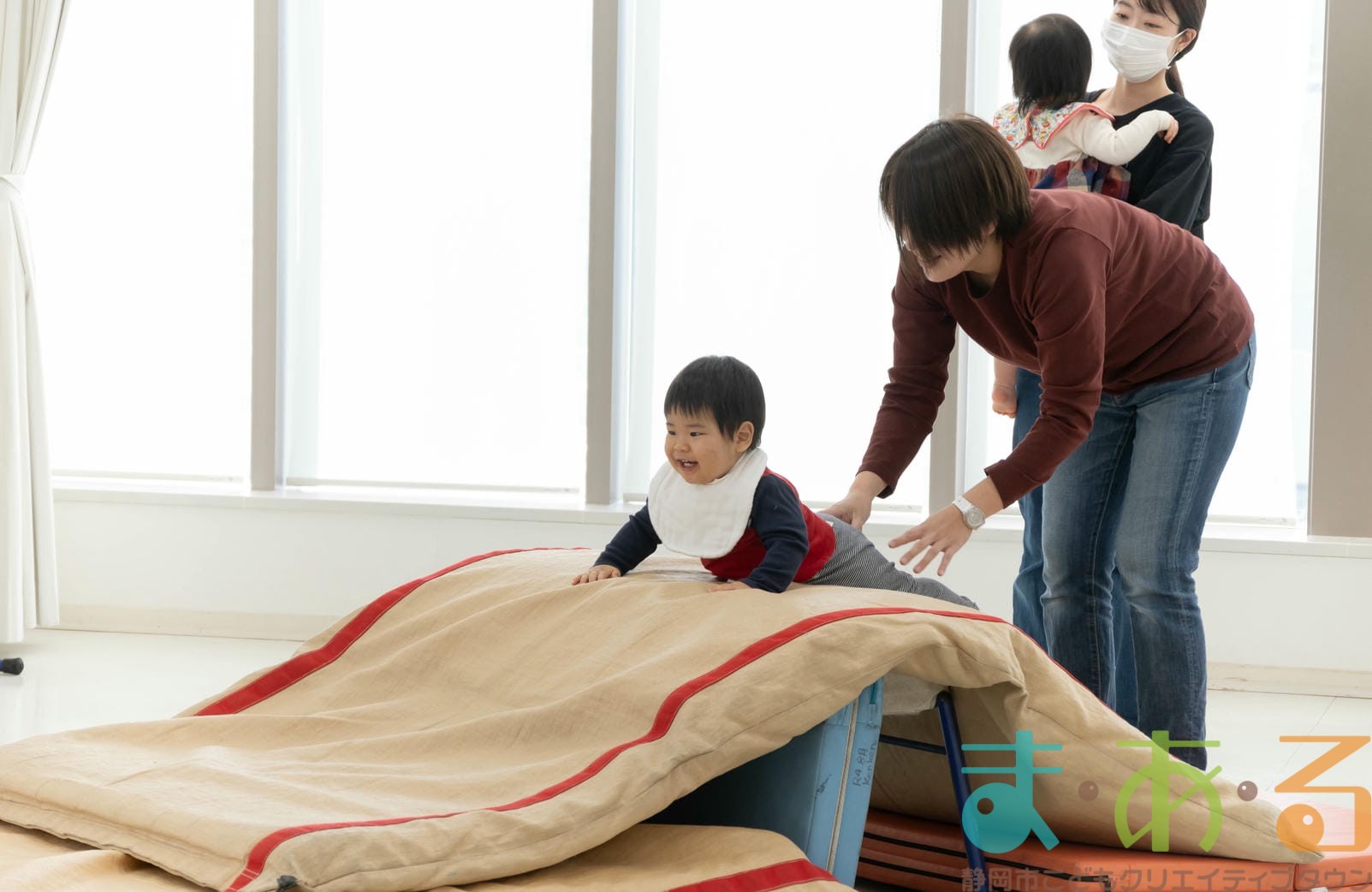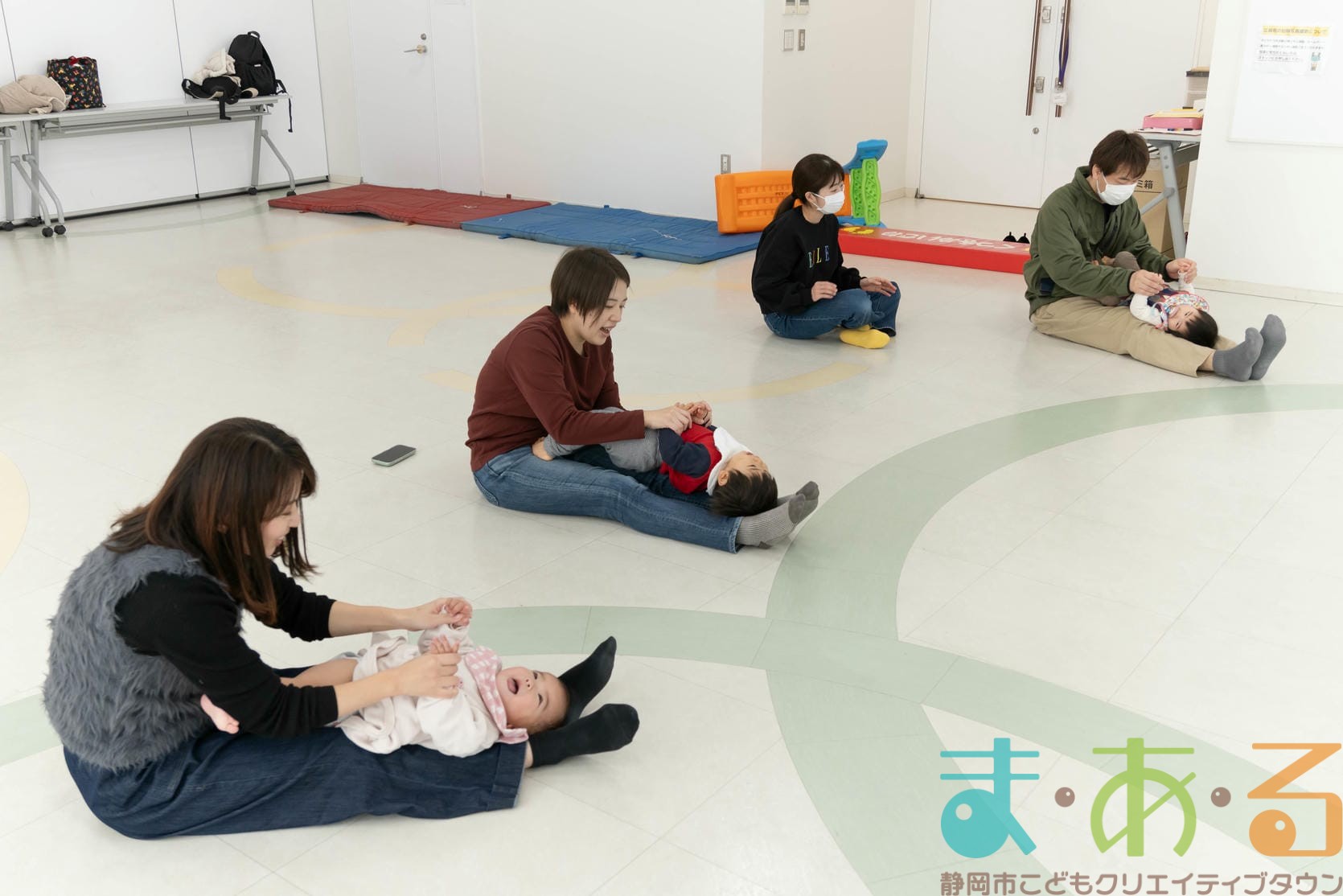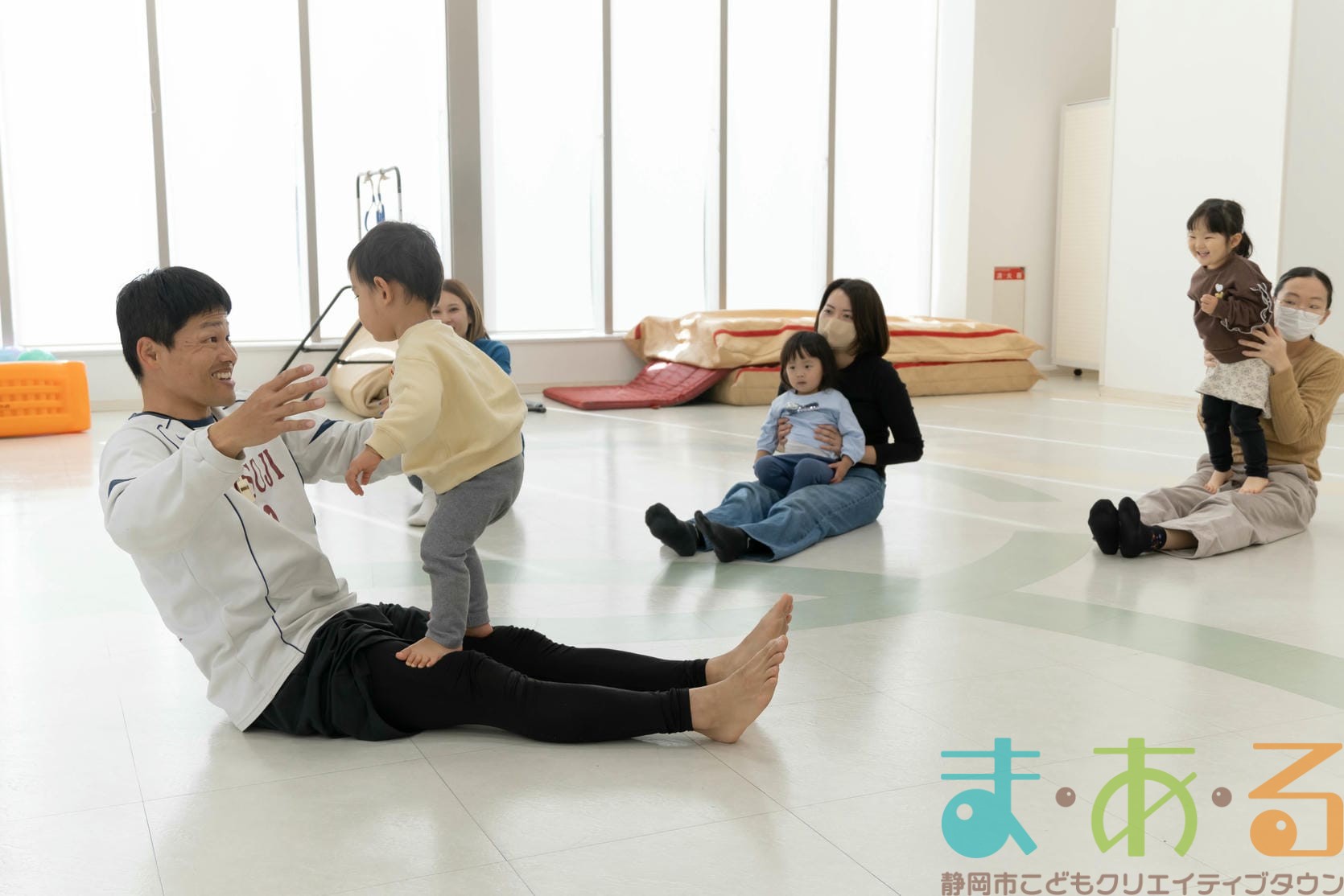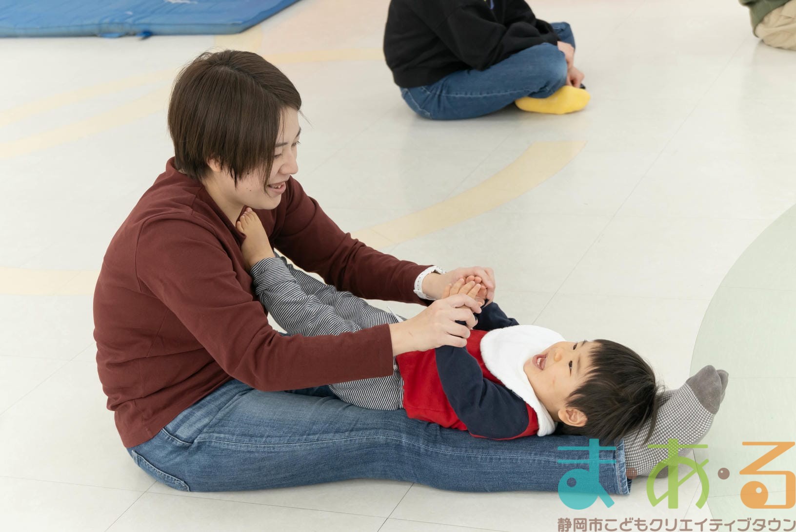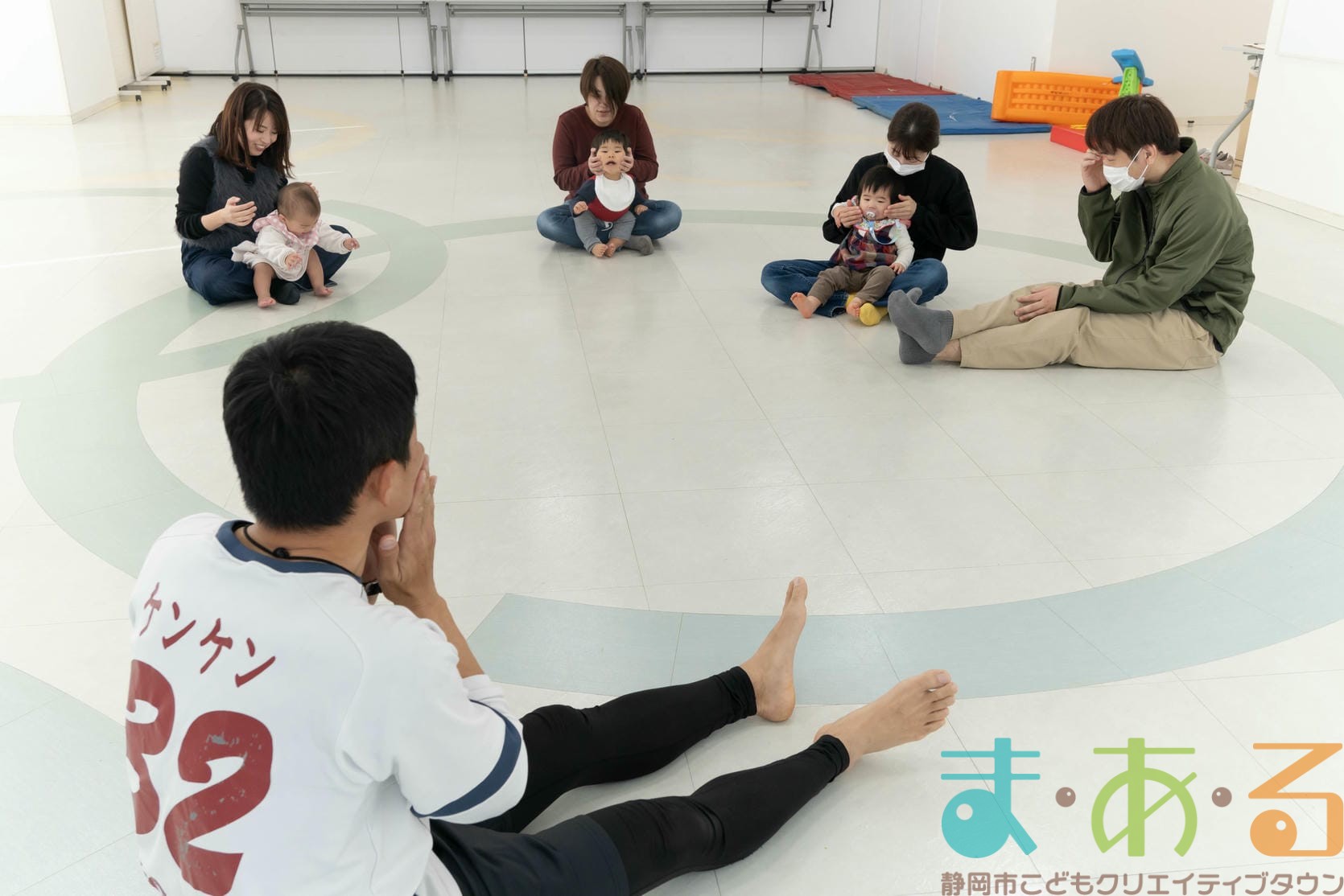 ふれあい遊びでは、ハイハイの動きや股関節を開く座り方でバランス感覚を養います。