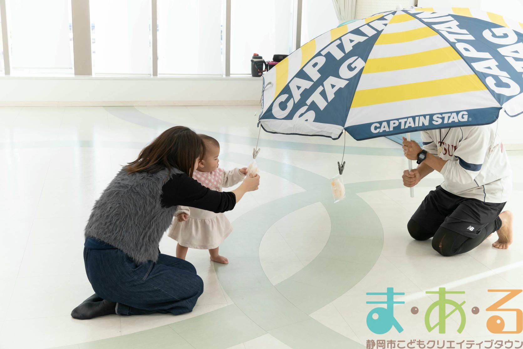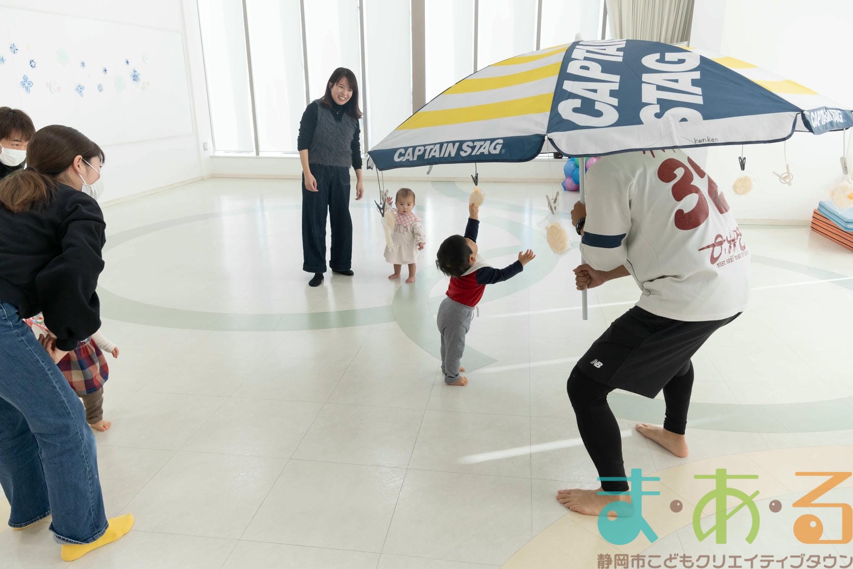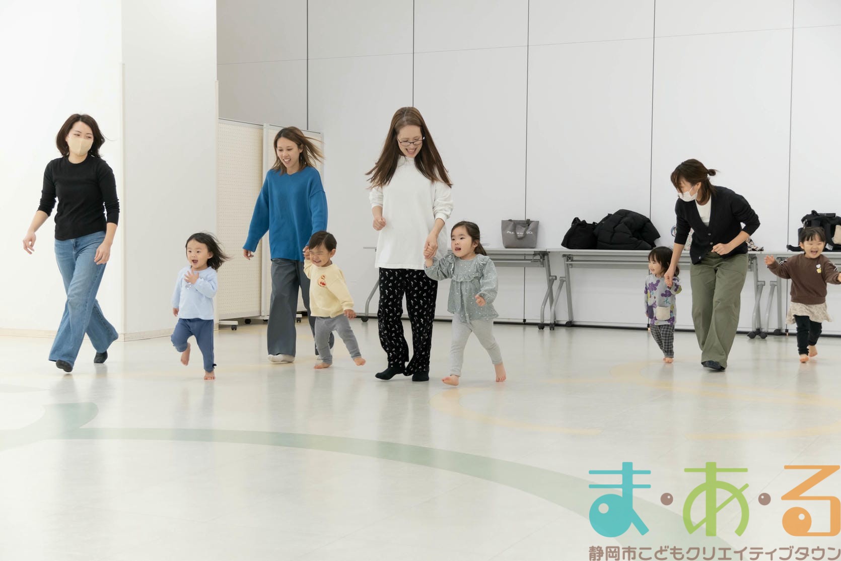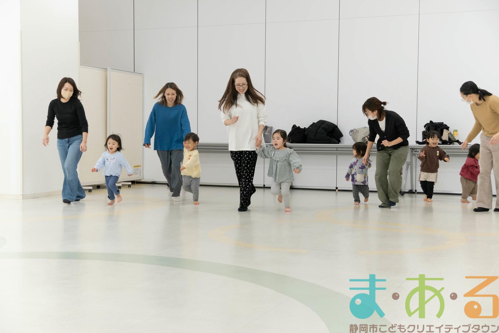 歩けるお友達はおうちの人と手を繋いで、抱っこのお友達は大きくジャンプしながら最初の場所に戻ってきました。