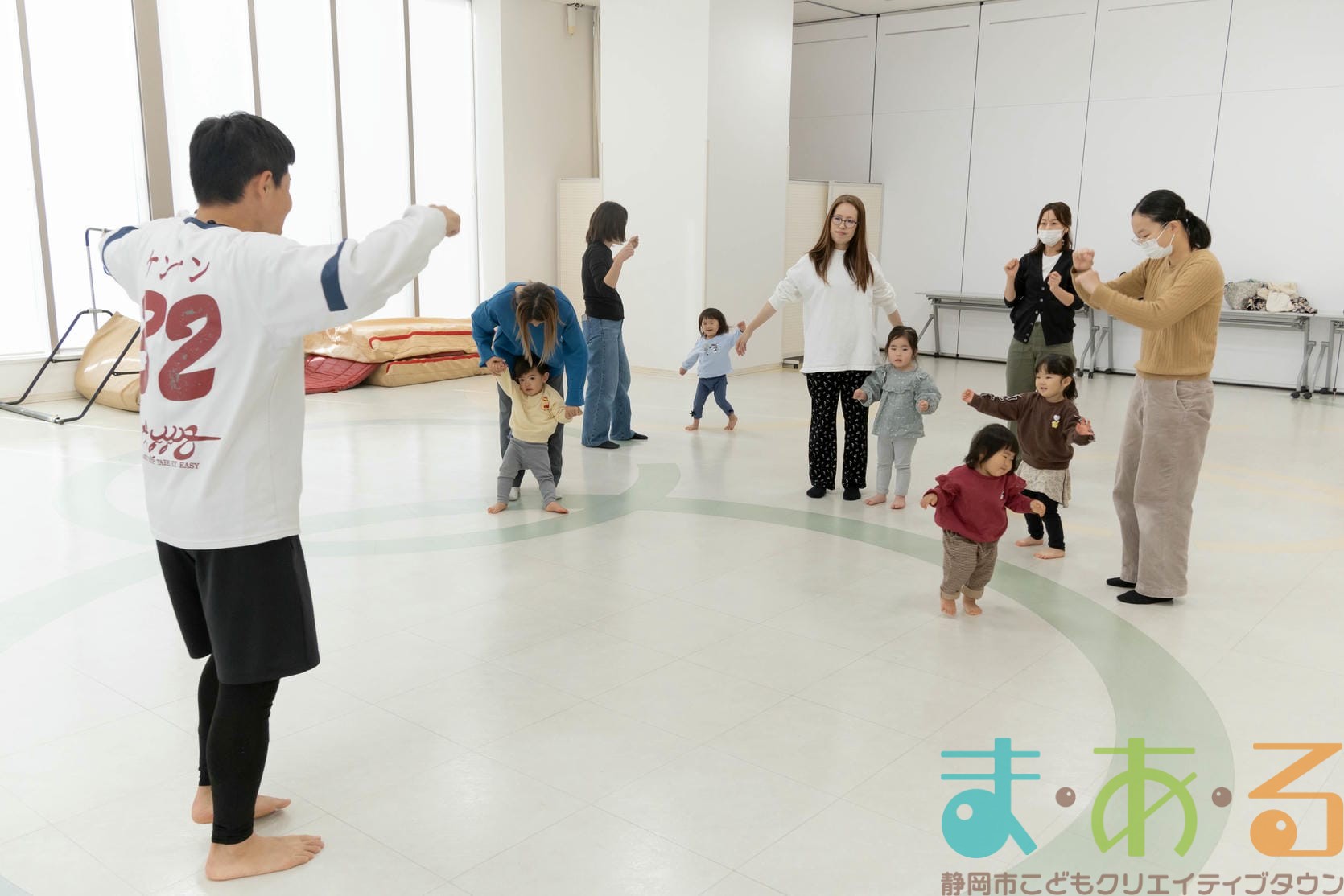 1月20日は、(有)きのいい羊達のケンケン先生にご協力いただき、ちびっこプログラム『わくわく体操広場』を開催しました。