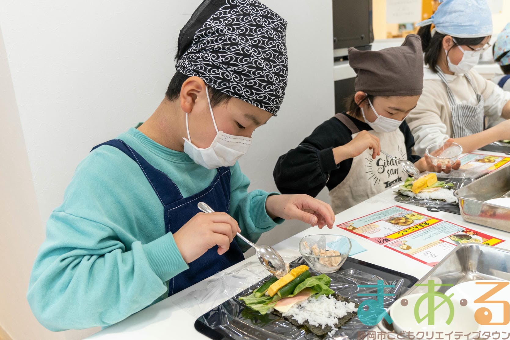 「むずかしい~」「具材が落ちちゃいそうだよ」