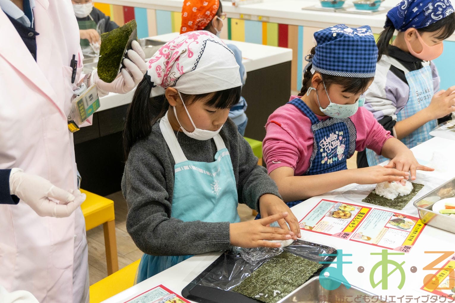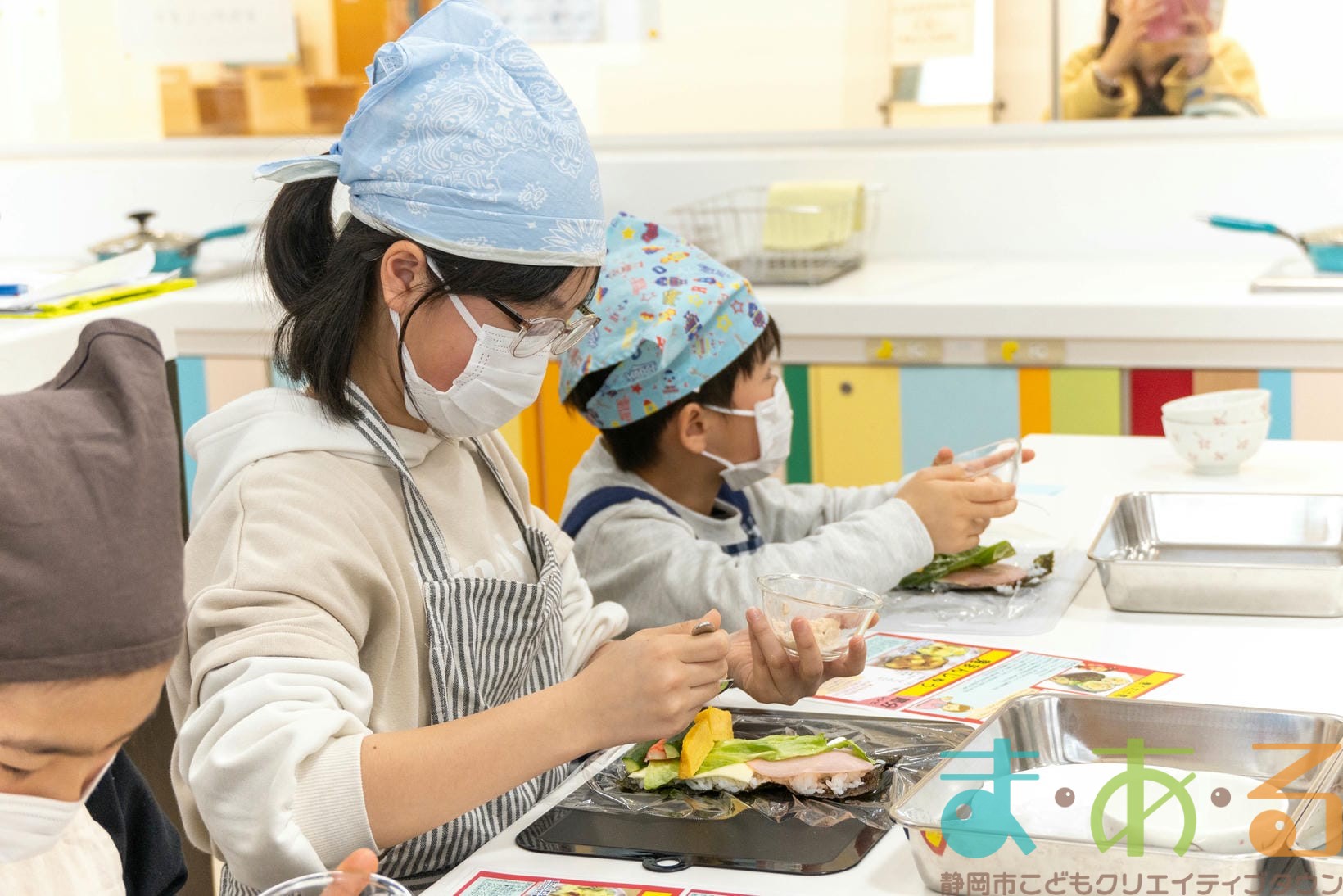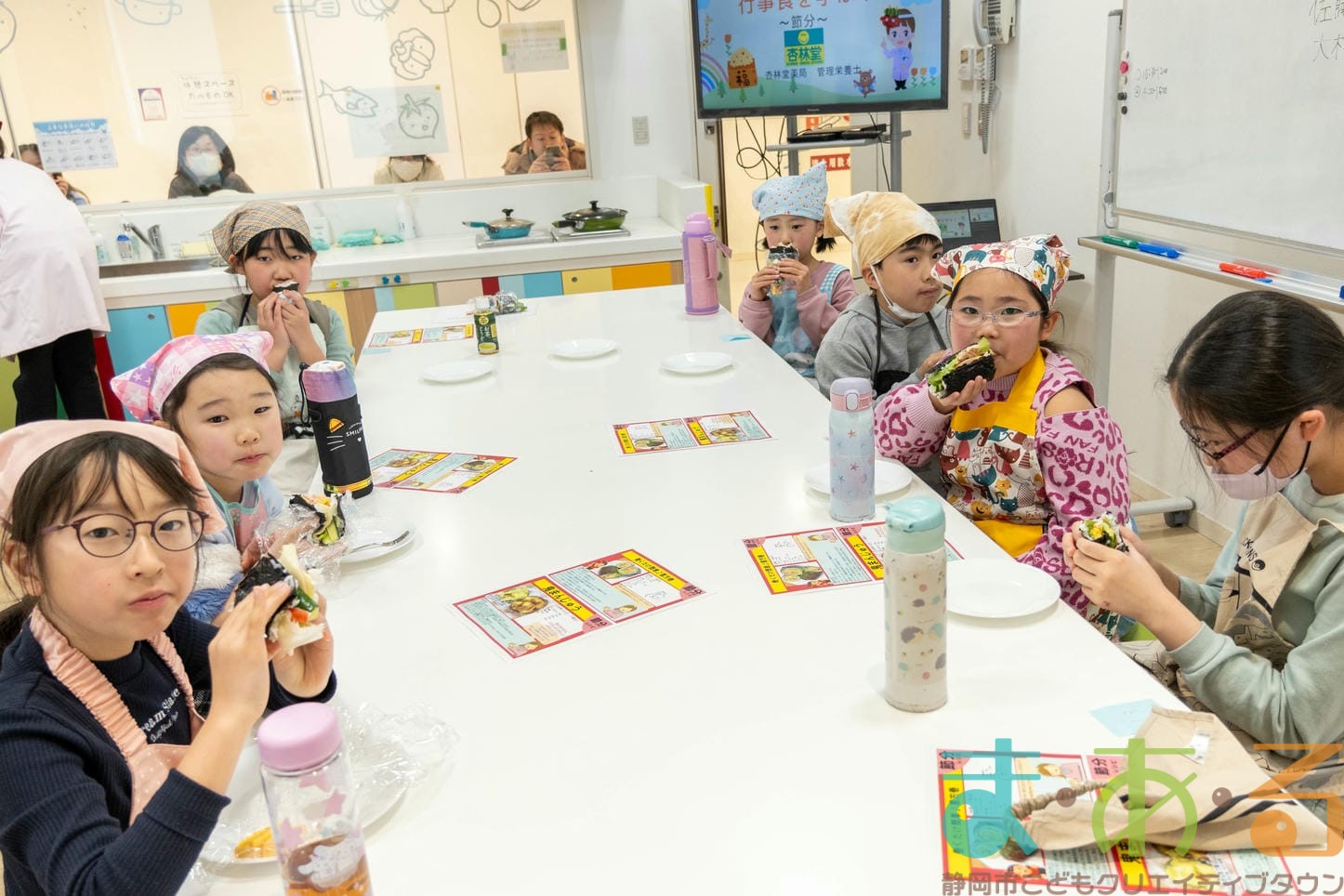 1月31日は、株式会社杏林堂薬局 管理栄養士の池ヶ谷先生、前川先生、佐藤先生、大村先生にご協力いただき、「恵方巻と鬼まんじゅうを作ってみよう!」講座を開催しました。