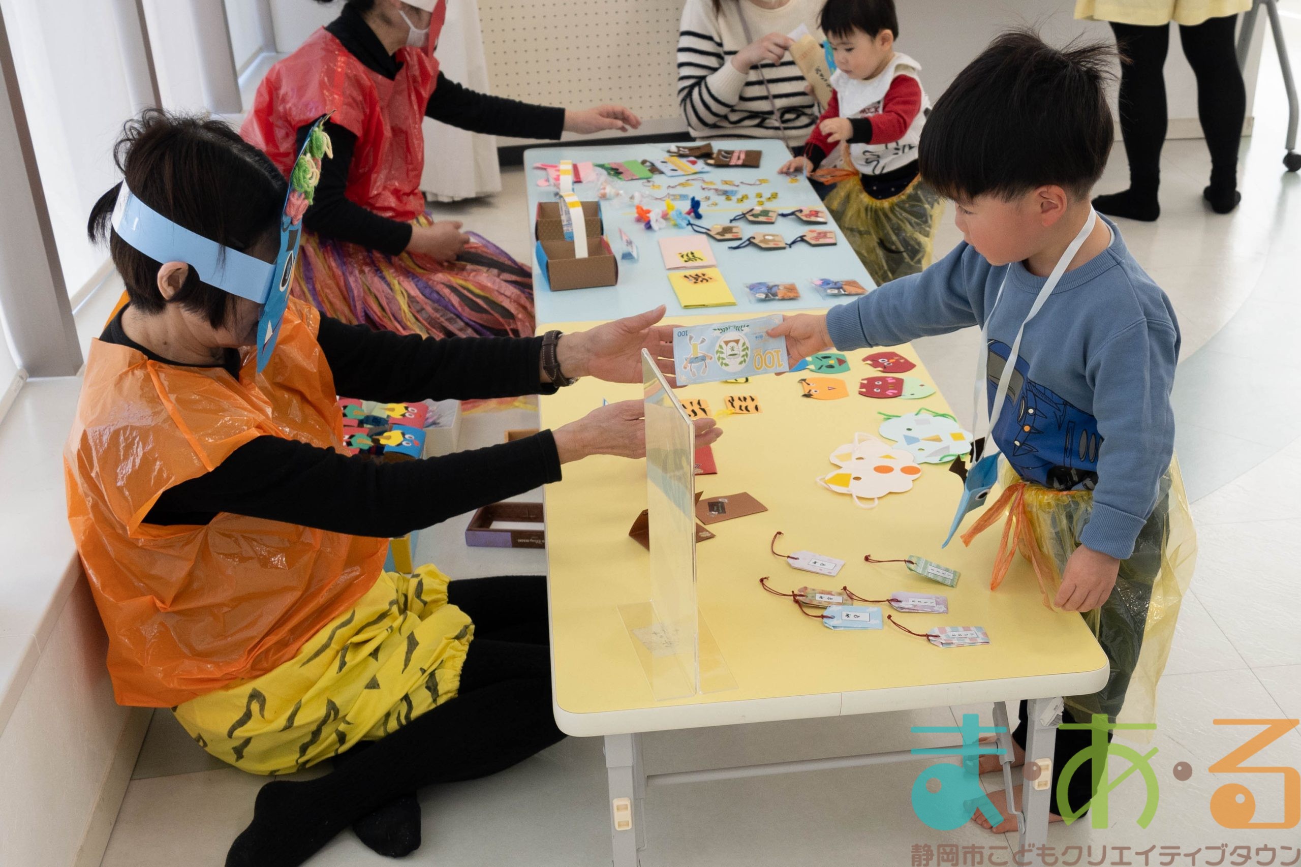 このプログラムでは、季節の雰囲気を楽しみながら、未就学児親子~小学生が工作(おしごと)をしてお給料をもらったり、お買い物の体験をすることができます。
