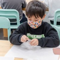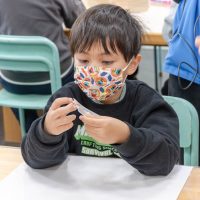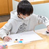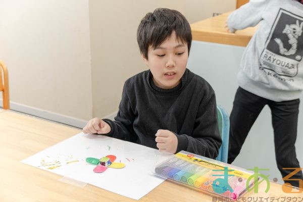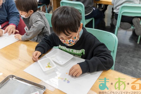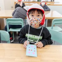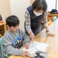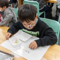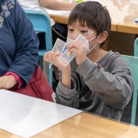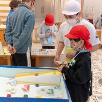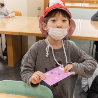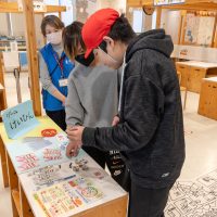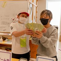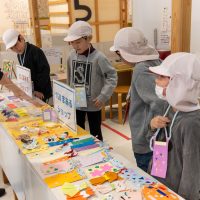 最後に両面テープで固定したら完成です。どちらのグループも商品が完成したので、お店に商品を納品して後半は、おかいもの体験です。