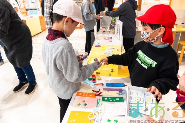 全品50まあるの商品を売る「50まあるショップ」と、全品100まあるの商品を販売する「100まあるショップ」がありました。事前に学校で作ってきてくれたおさいふとしおりは100まあるショップに追加されました。
