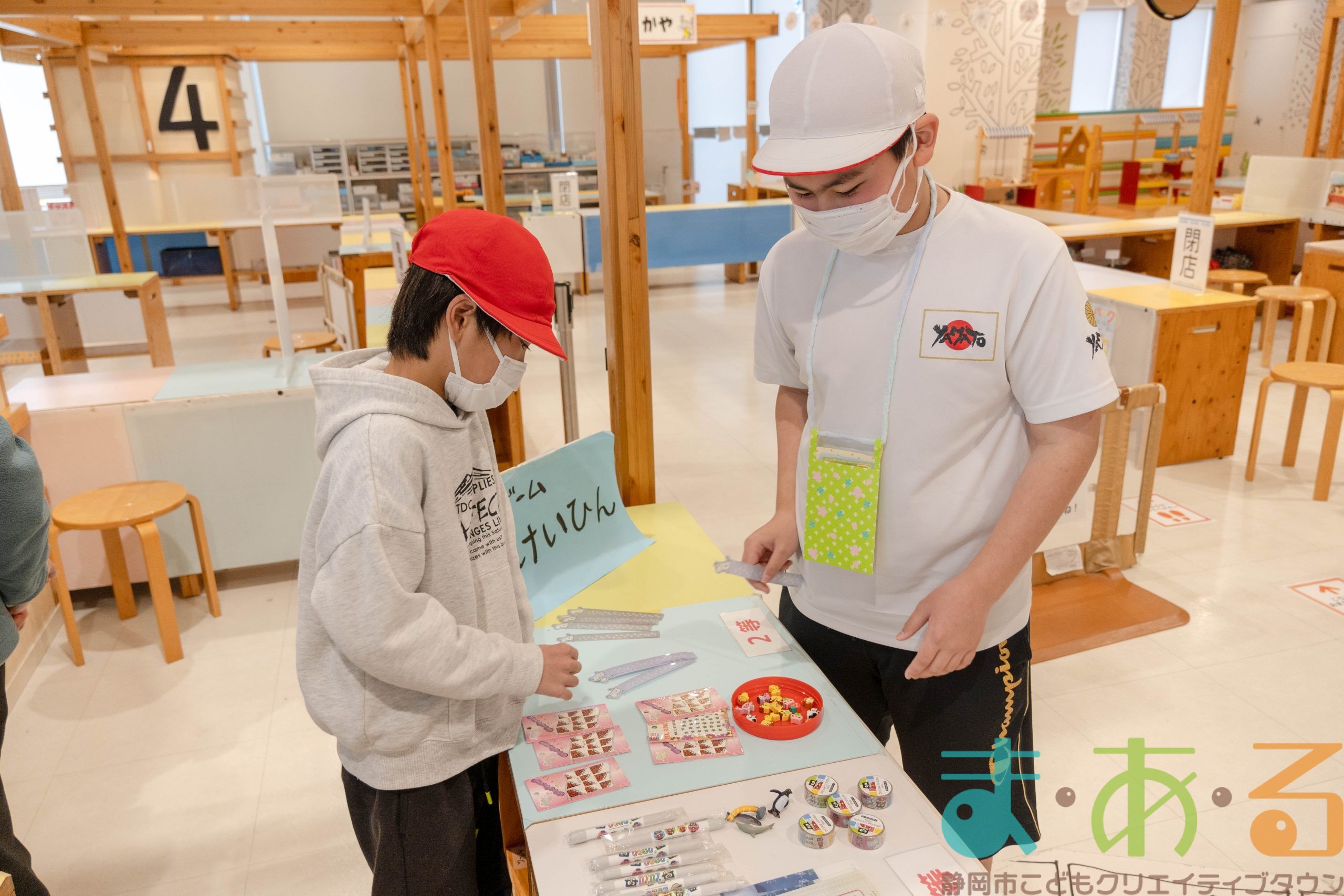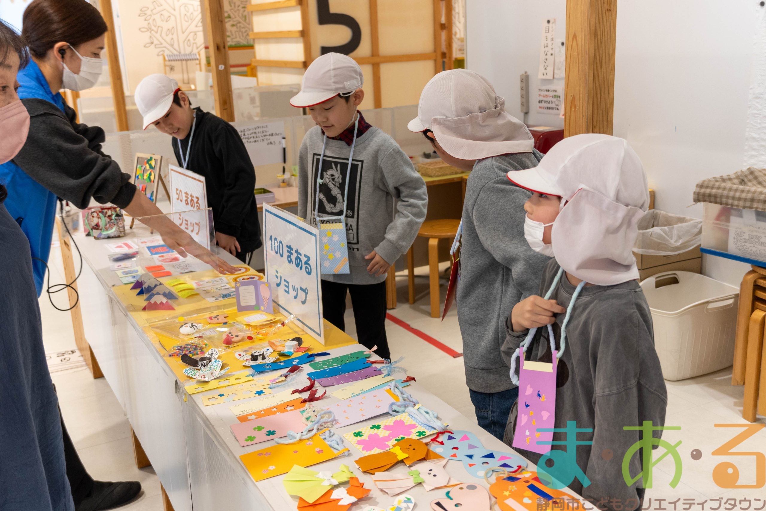 全品50まあるの商品を売る「50まあるショップ」と、全品100まあるの商品を販売する「100まあるショップ」がありました。事前に学校で作ってきてくれたおさいふとしおりは100まあるショップに追加されました。