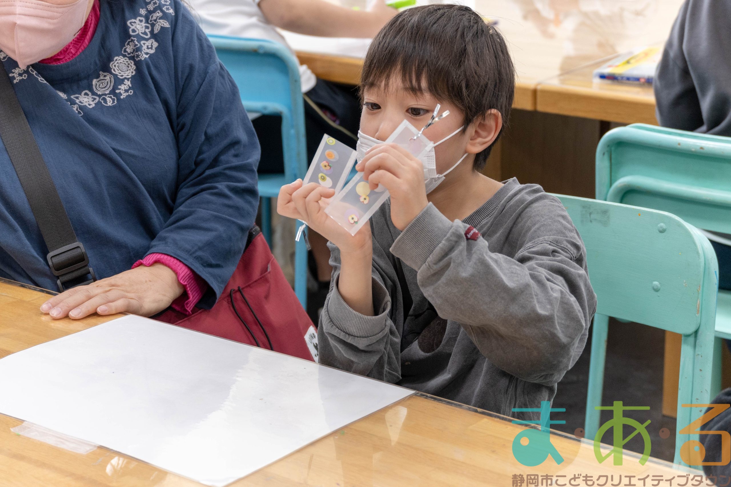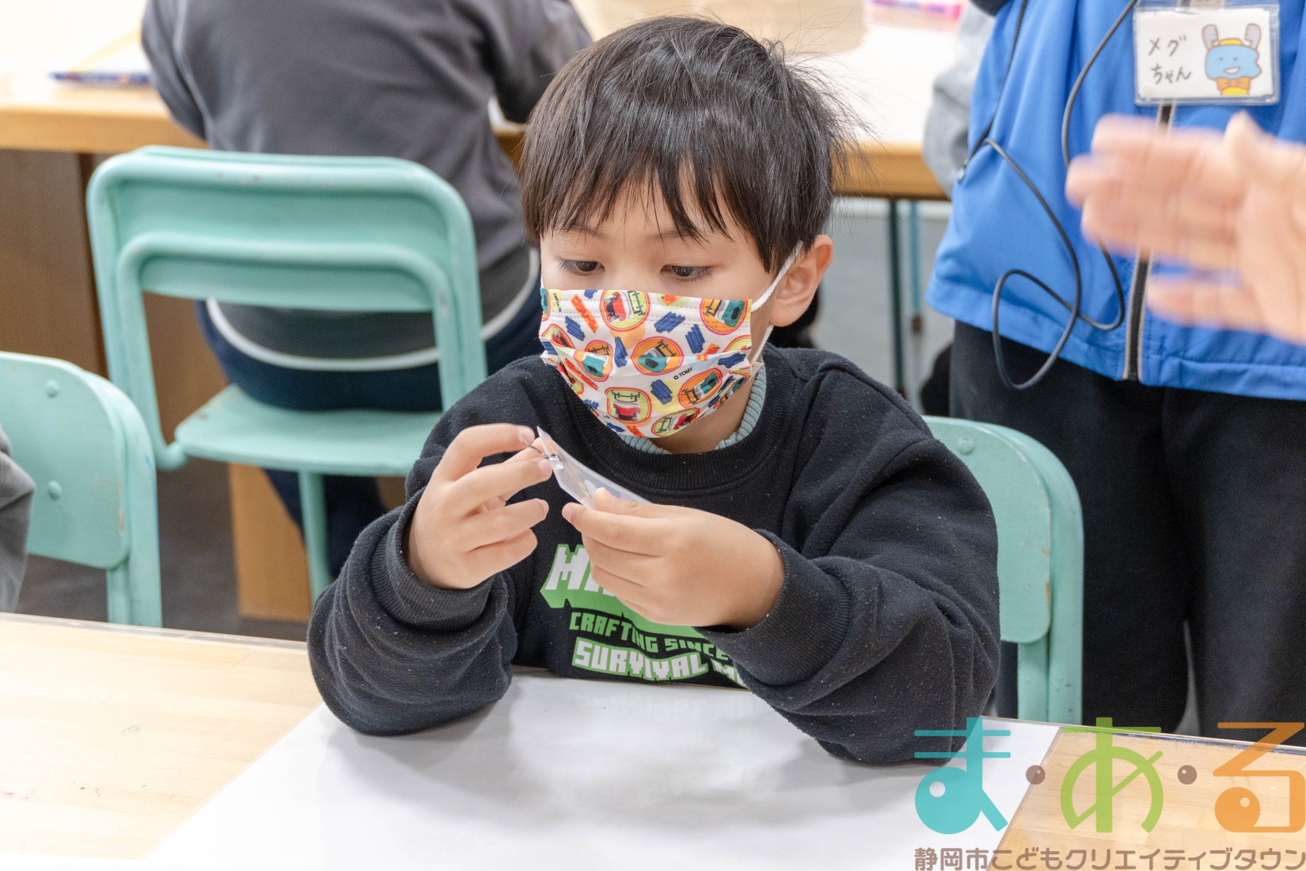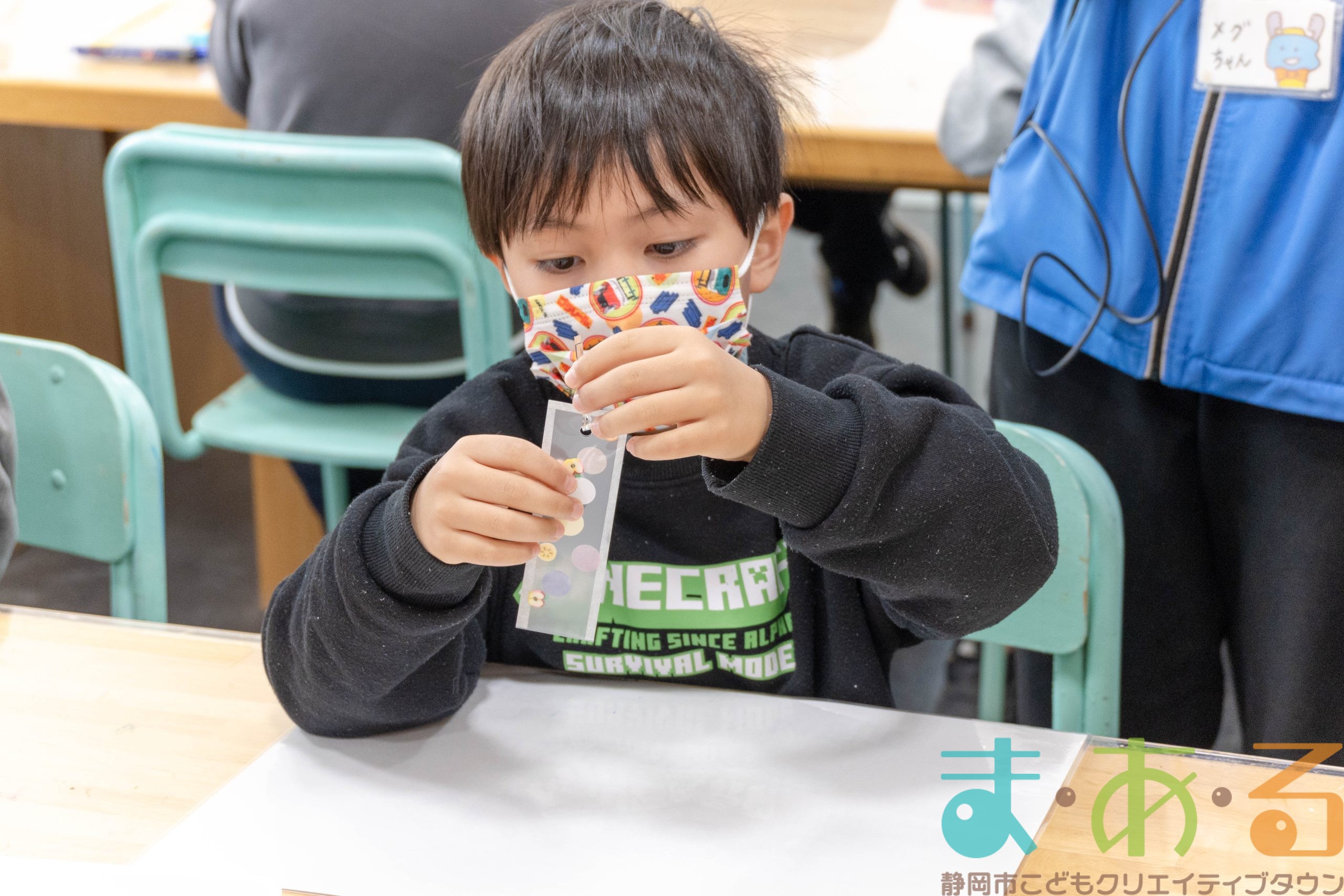 最後に両面テープで固定したら完成です。どちらのグループも商品が完成したので、お店に商品を納品して後半は、おかいもの体験です。