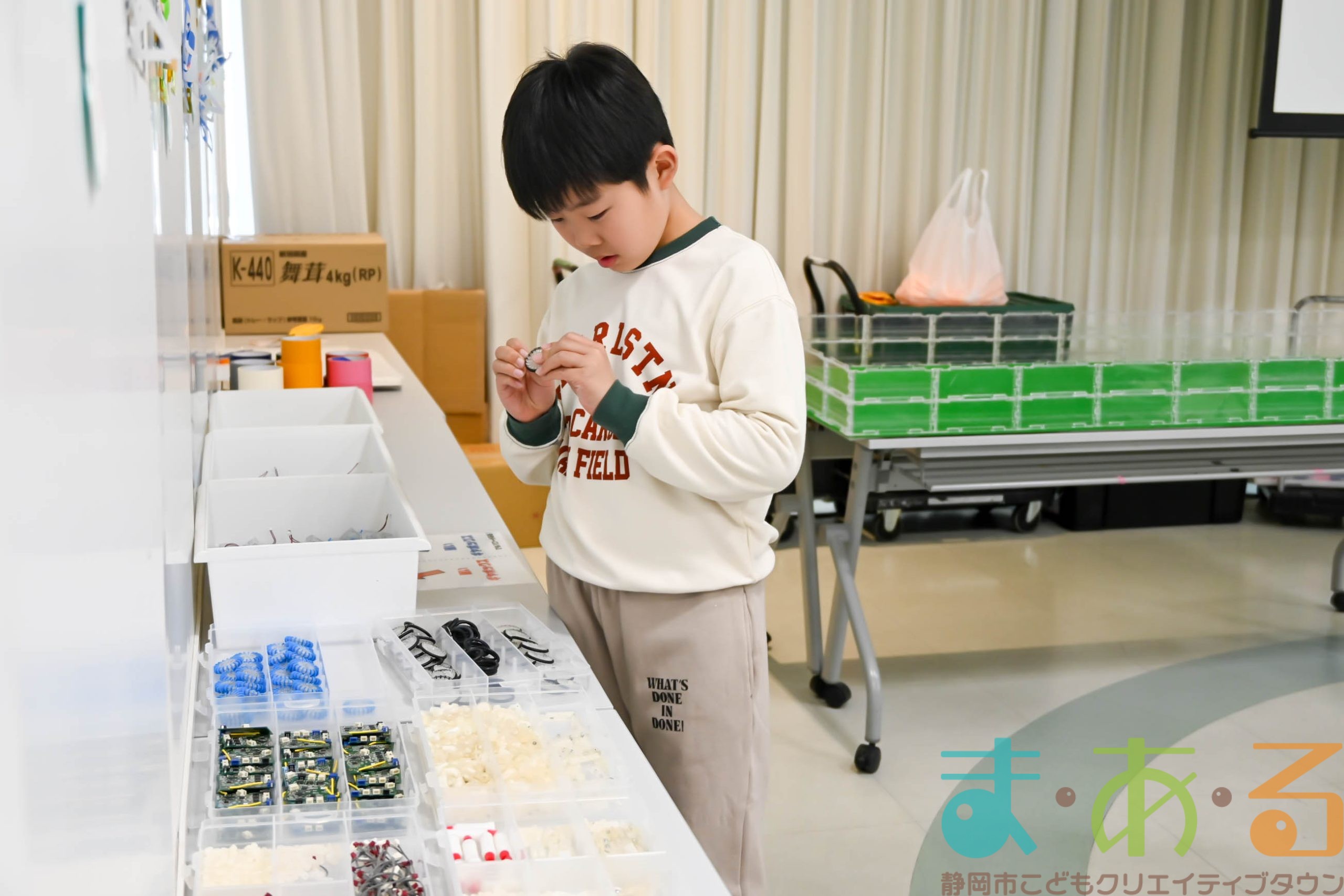 制作に必要な様々な部品や文具が用意してあるので、必要なものを選んで自分のロボットに使います。