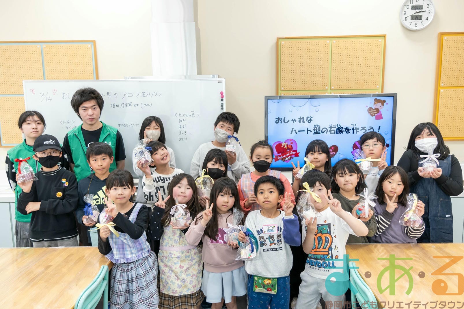 2月14日は、MASの増田琴乃先生と増田乃輝先生にご協力いただき「おしゃれなハート型のアロマ石けん!」講座を開催しました。