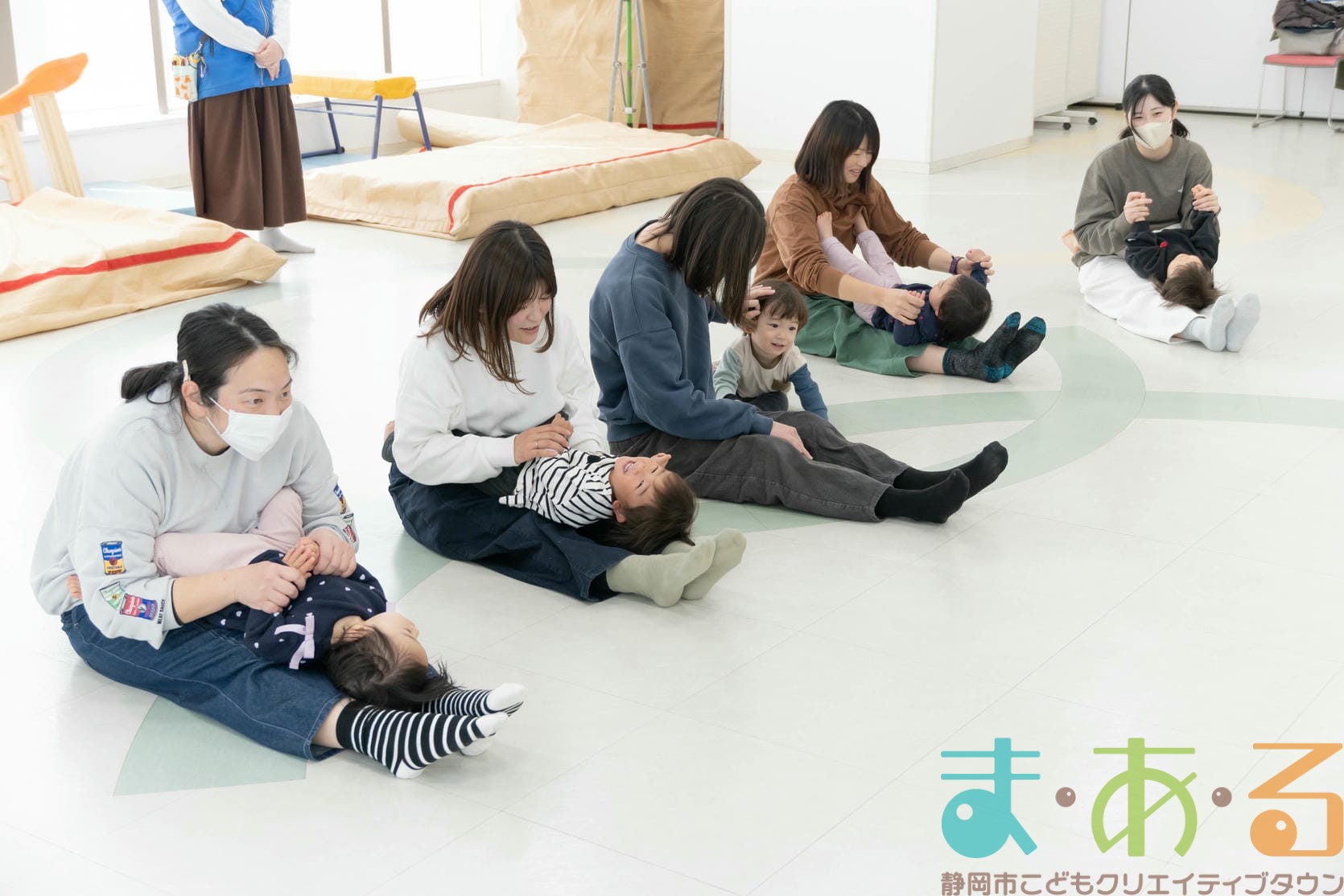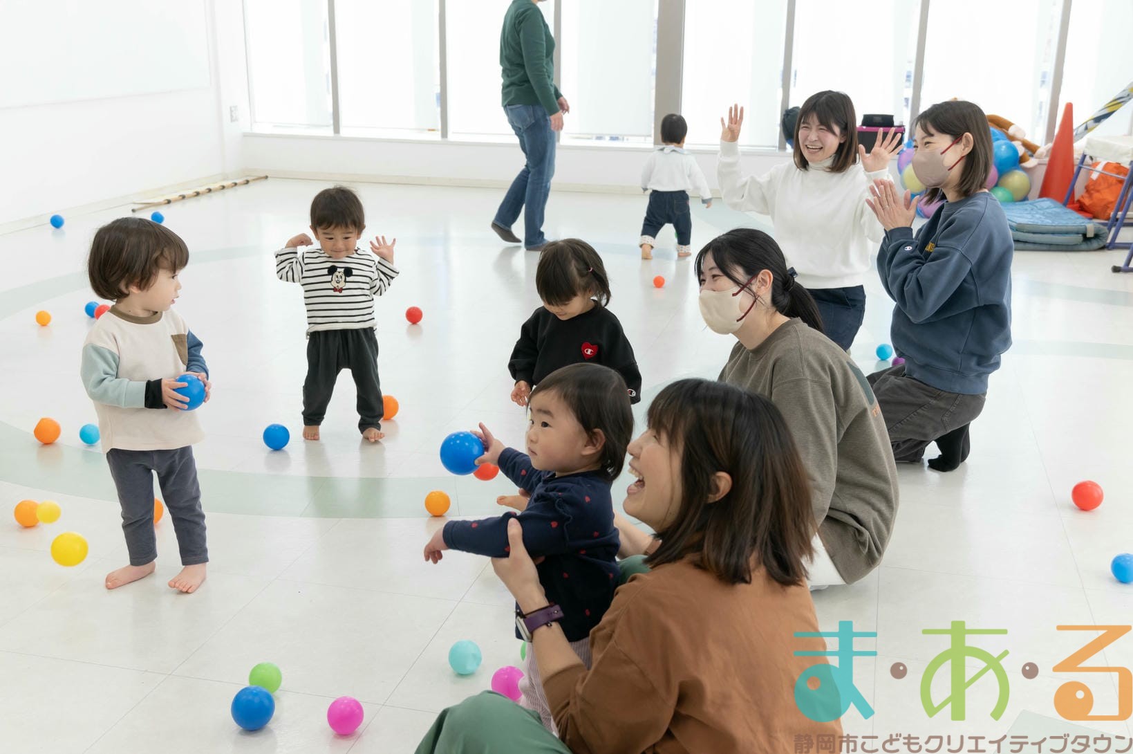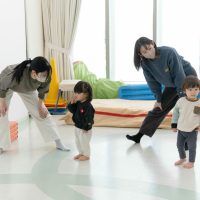 まだ歩くことが難しい月齢のお子様も一緒に手遊びやふれあい遊び、ボール遊びを通して少しずつ雰囲気に慣れていきます。
