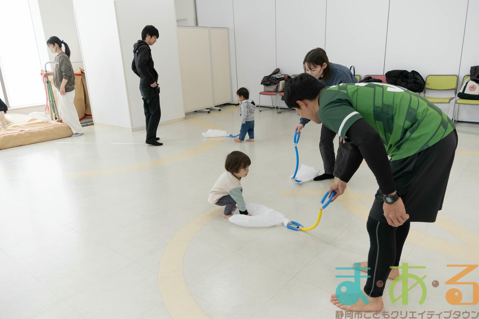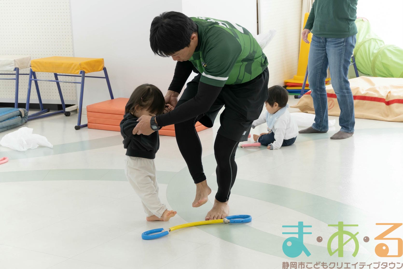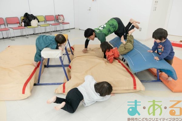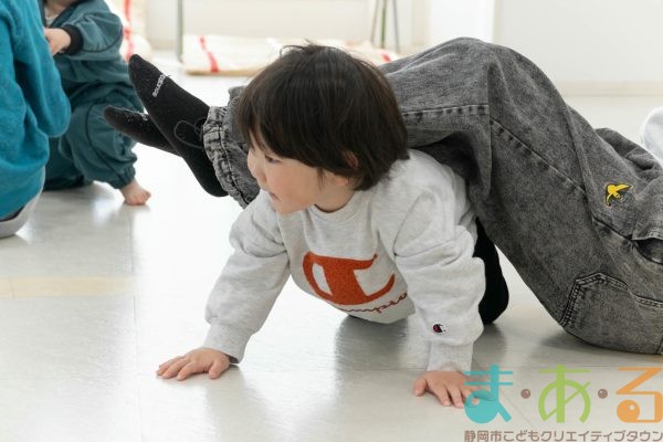 転んだ時の受け身に繋がる回転感覚を養う遊びは、大人の皆さんの全身運動にもなります。