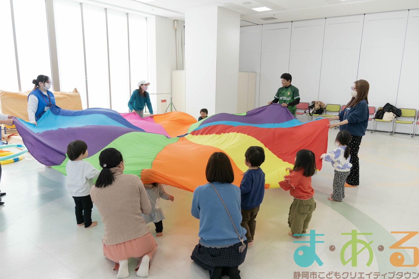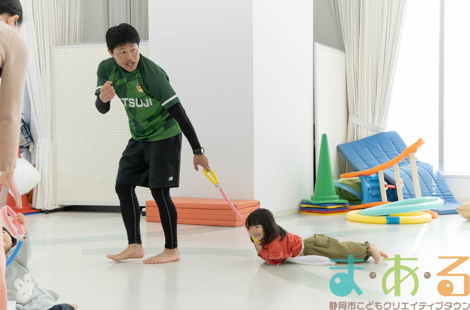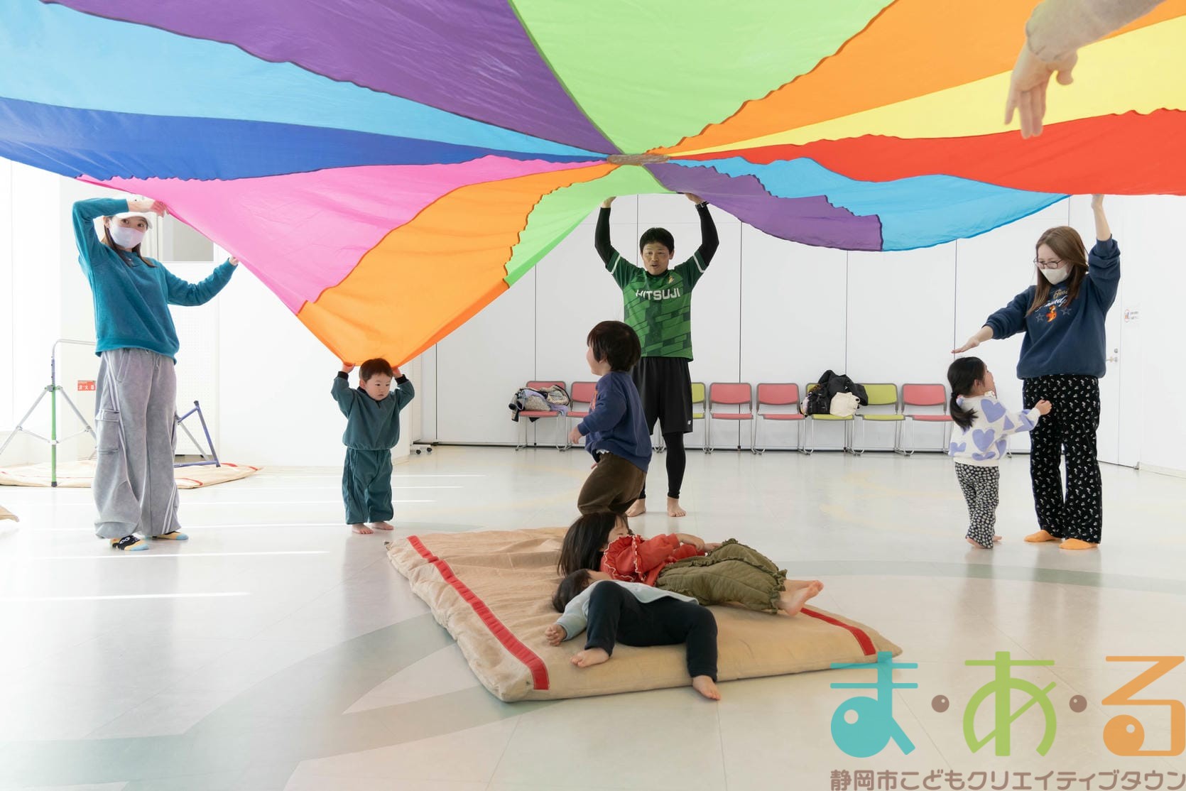 転んだ時の受け身に繋がる回転感覚を養う遊びは、大人の皆さんの全身運動にもなります。