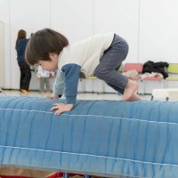 大きな跳び箱の上を登って反対側のマットへ移動できるかな?