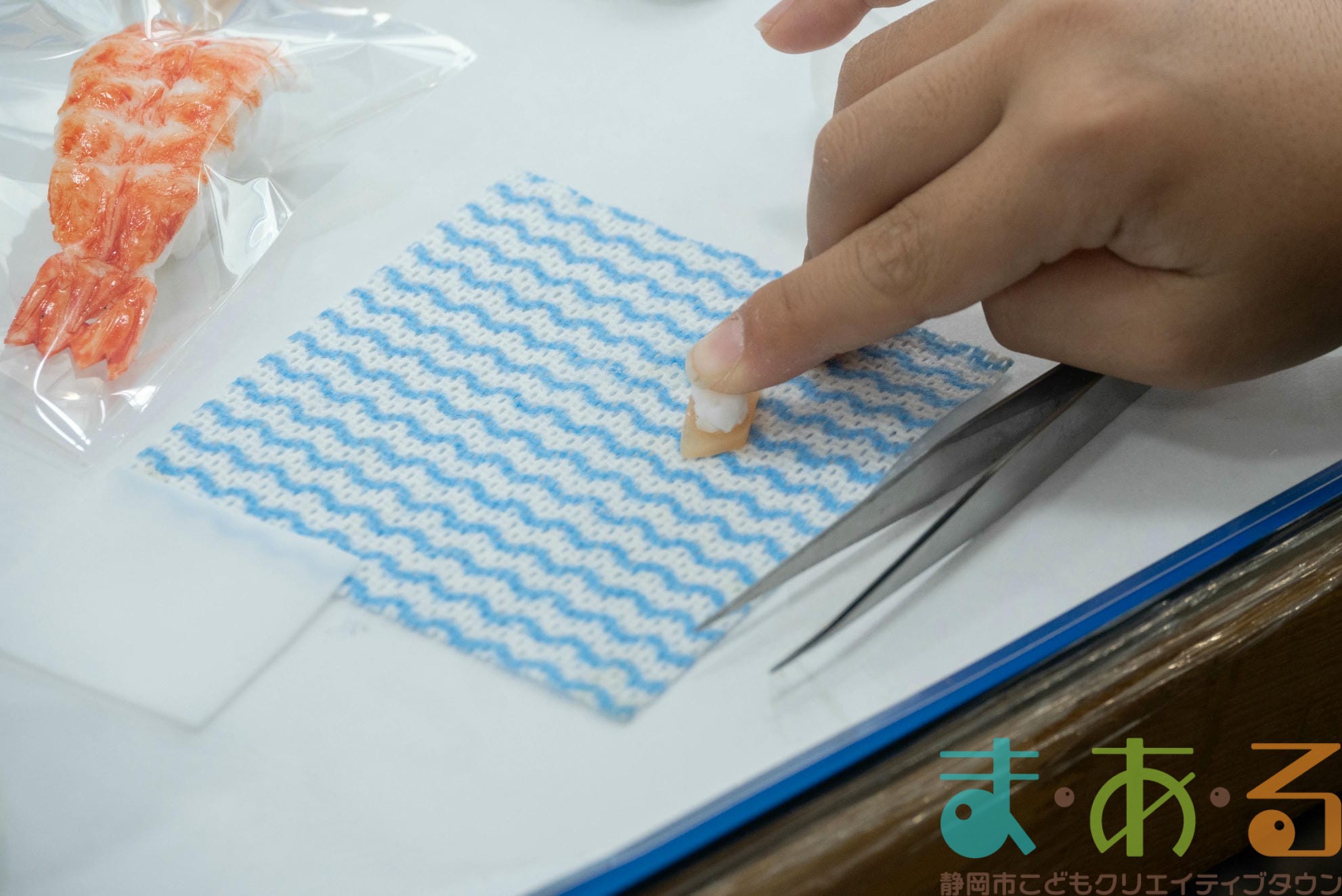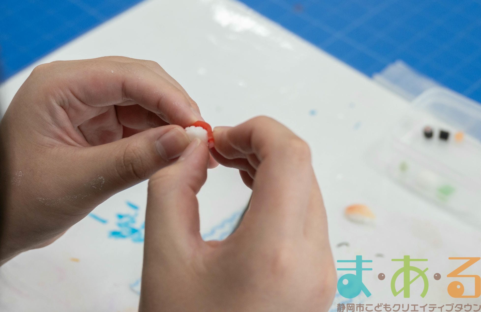 ネタとシャリを瞬間接着剤を使ってしっかりと固定します。