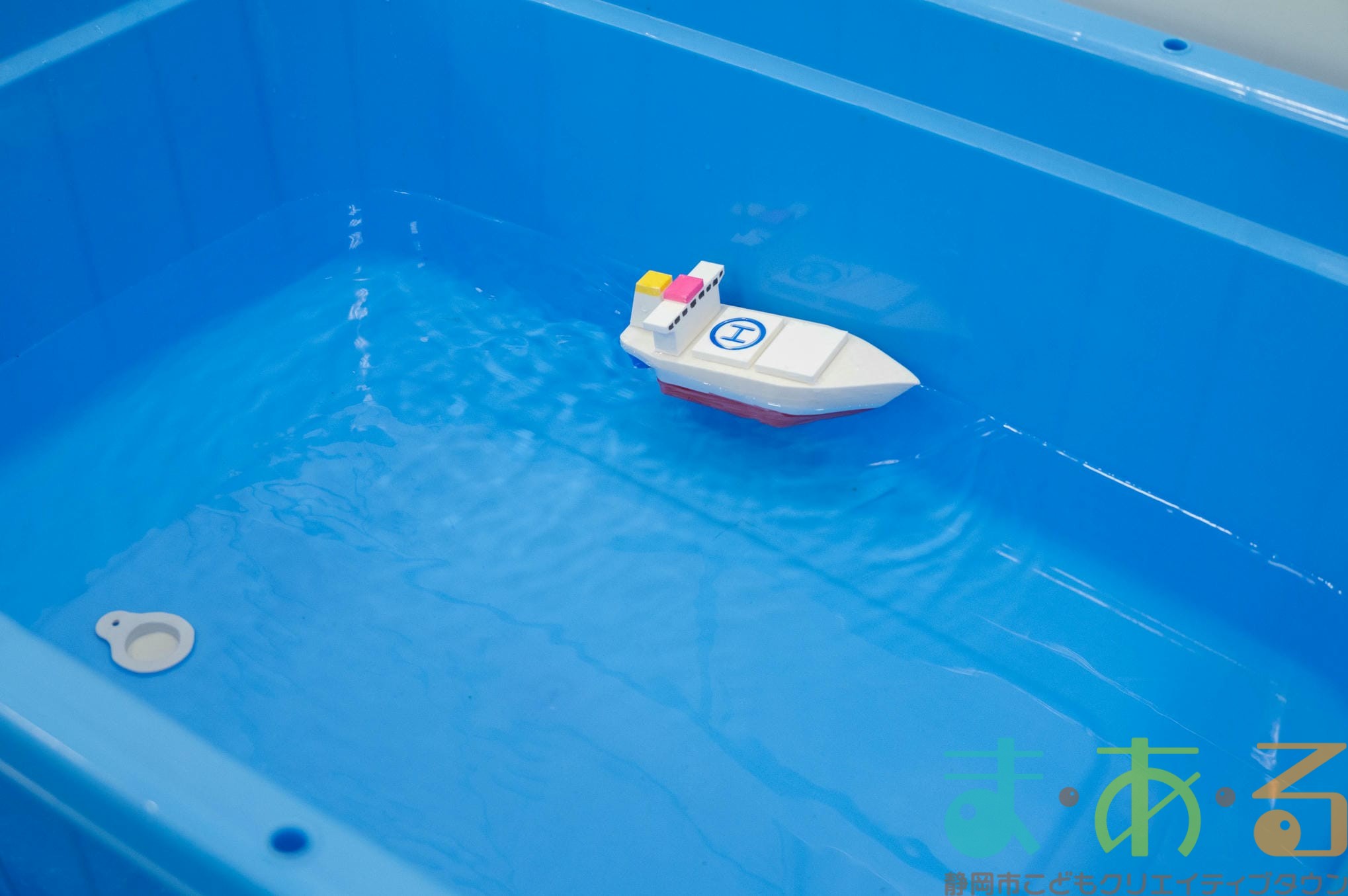 船が完成した方は、モーターを稼働させ、水槽の中で走らせます。