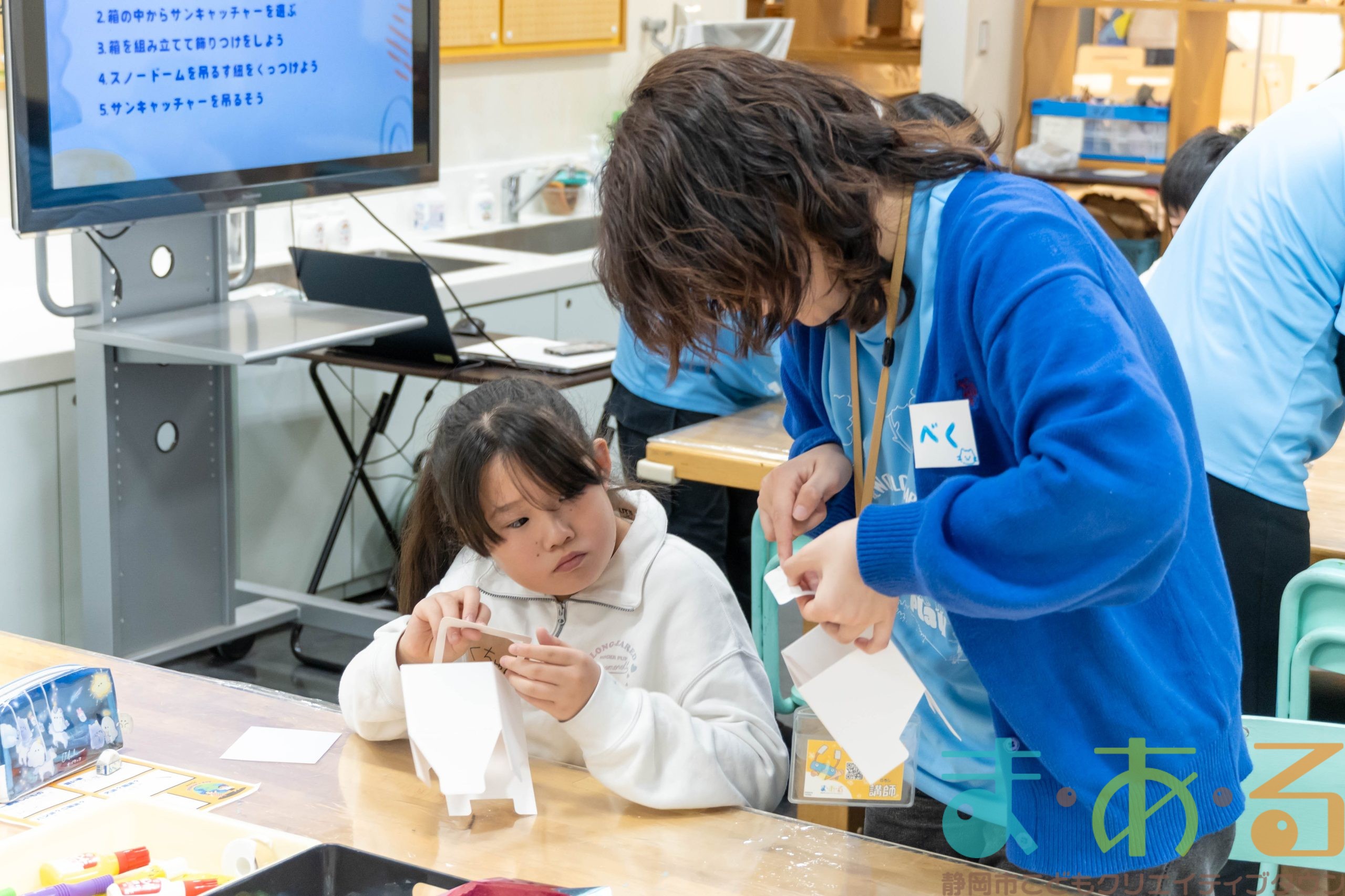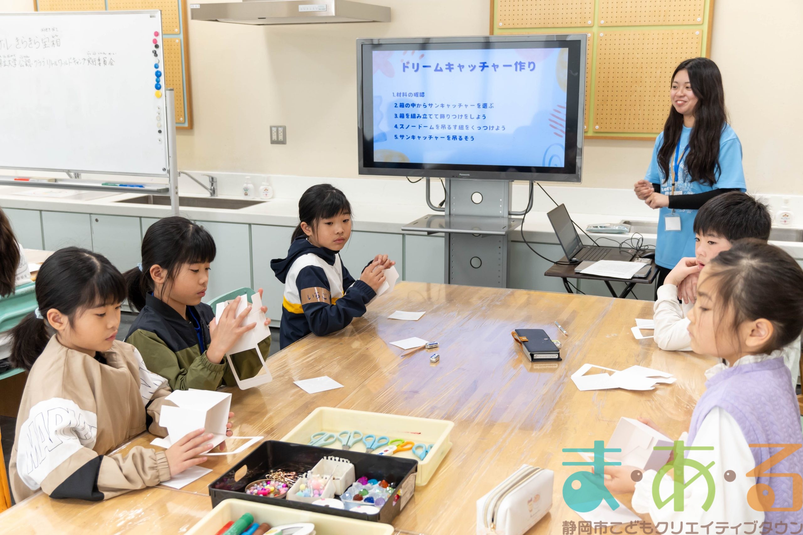 今回の講座では最初にリクリエーションを盛り込んで、みんなで仲良くなるきっかけのゲームをしてから、「スノードームサンキャッチャー」を作ります。