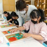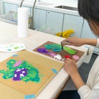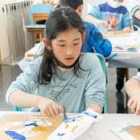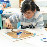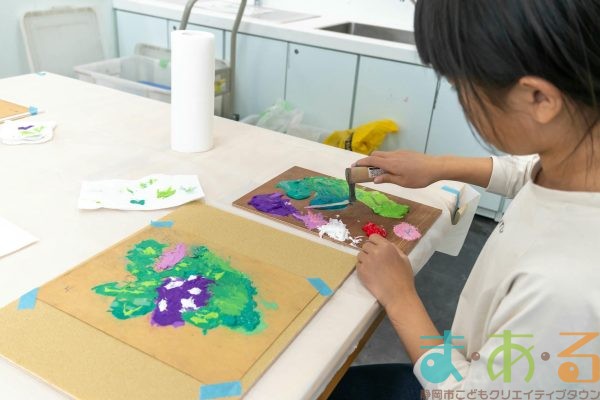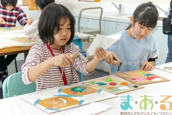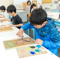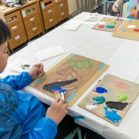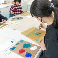 「思っていたより重いね」「ざらざらしてるね、砂が入っているのが分かる!」と、みなさん絵の具との違いも学ぶことができました。