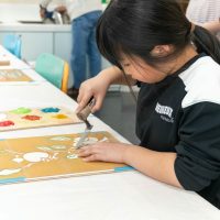 「細かいところは、コテの先を使って塗るといいよ」「隙間を埋めていこう」とアドバイスをもらいながら、完成に近づいてきました。