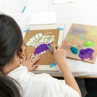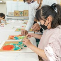 「お花の絵柄は、中心から色を付けていくと上手に塗れるよ」とポイントも教えていただきました。