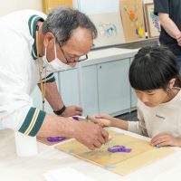 先生に、色の入れ方や塗り方のデモンストレーションを行っていただきました。