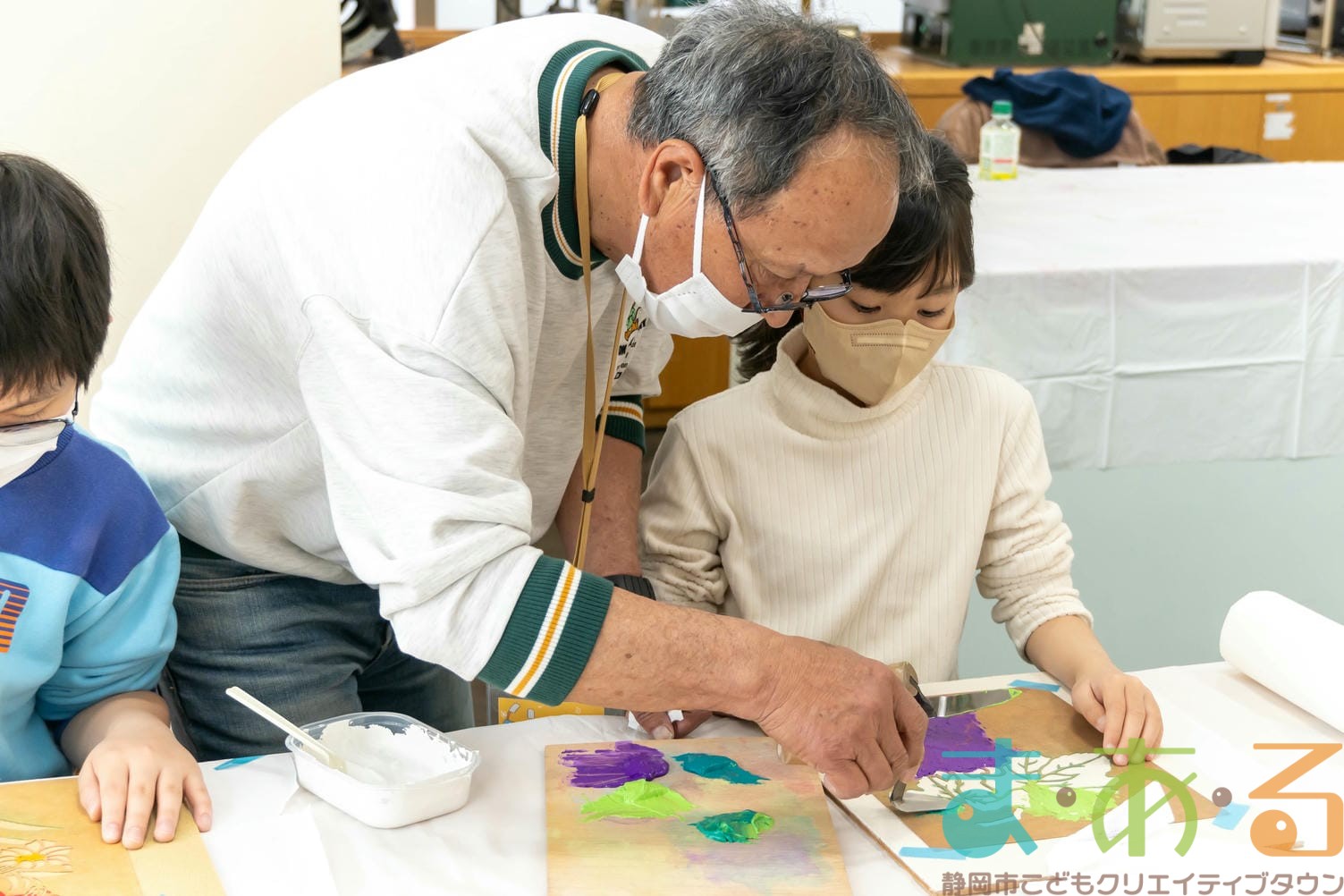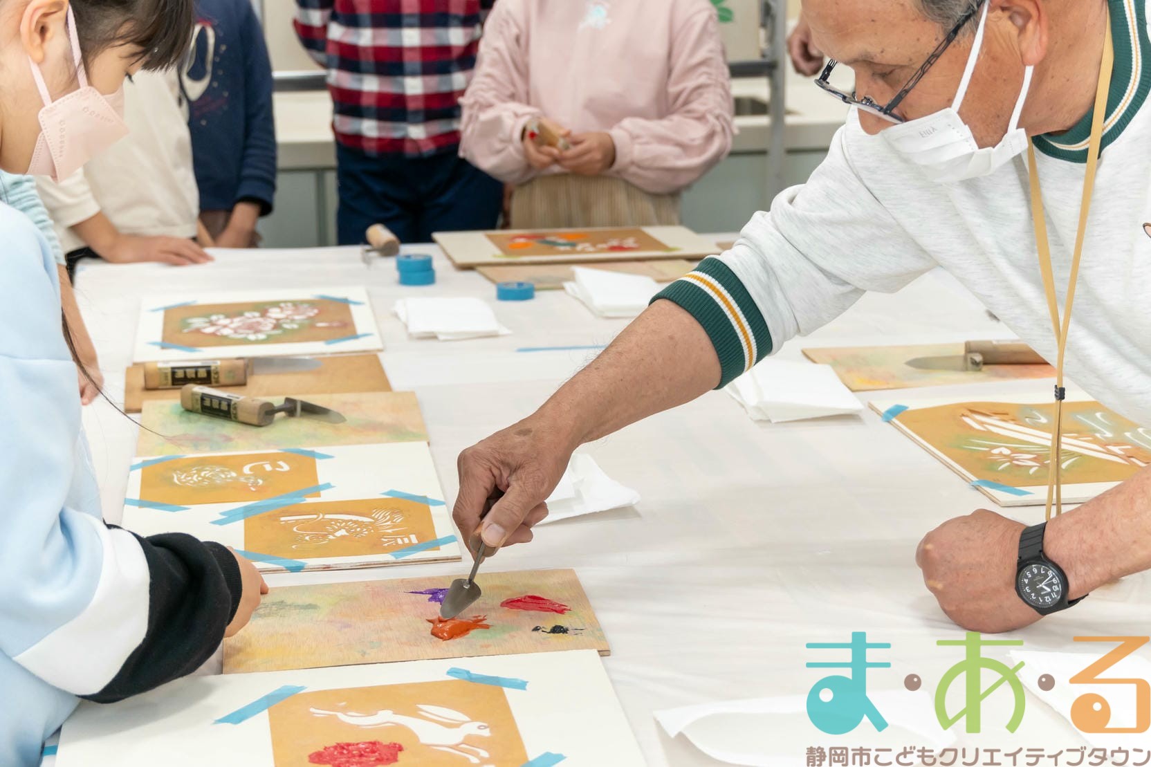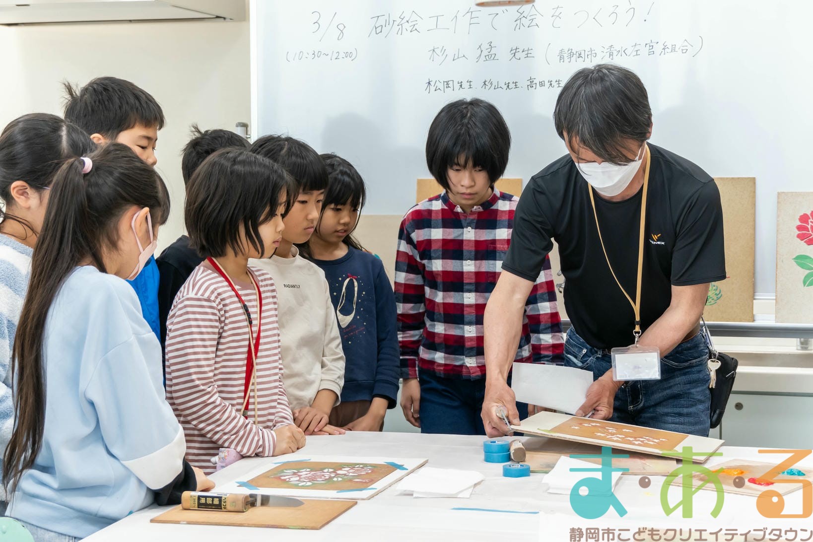 3月8日は、静岡市清水左官組合の杉山猛先生、松岡先生、杉山先生、高田先生にご協力いただき「砂絵工作で絵をつくろう!」講座を開催しました。