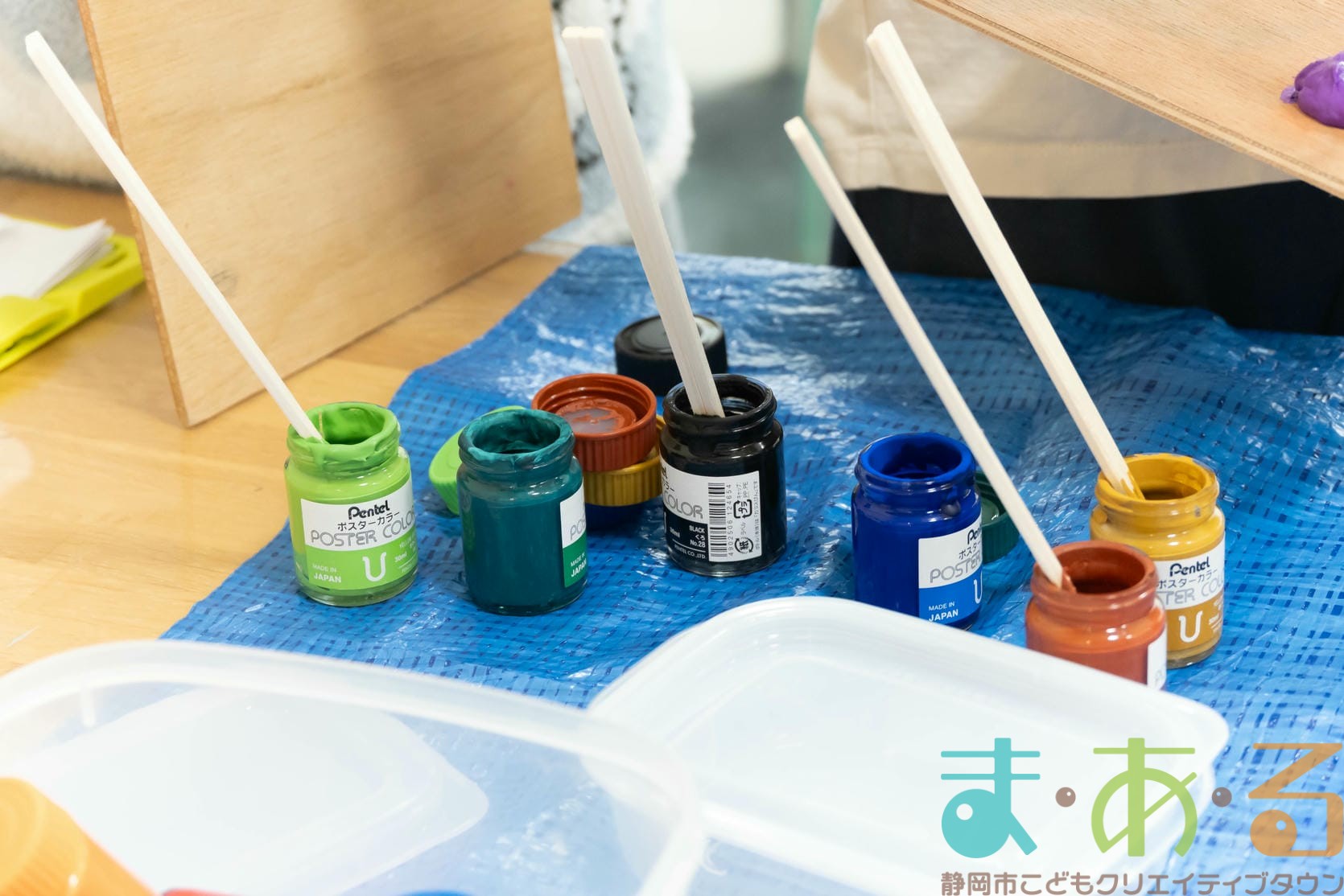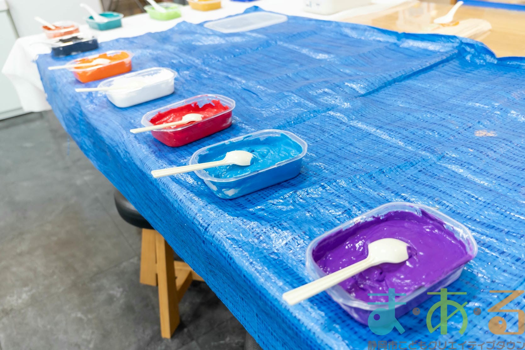 白い珪藻土に水を少し混ぜて、ポスターカラーで色を入れた11種類の色を準備してくださいました。