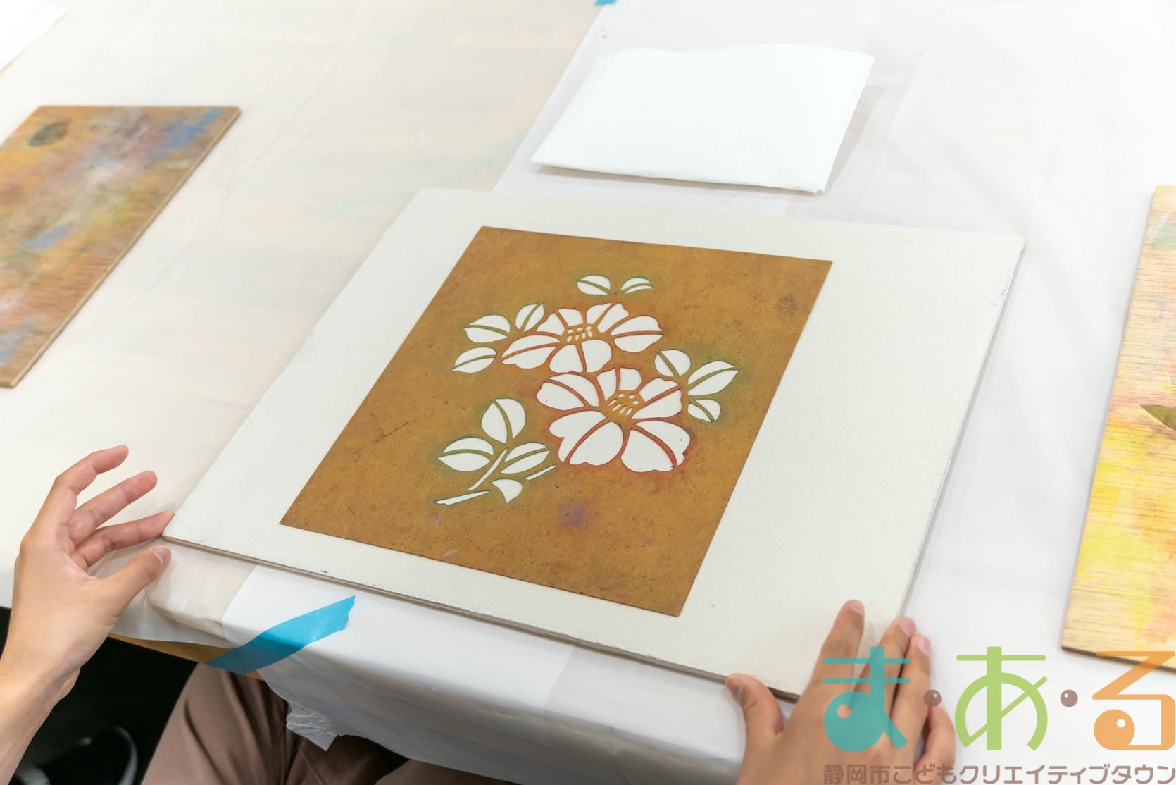 全て塗れたら、絵柄をゆっくりと丁寧にはがしていきます。